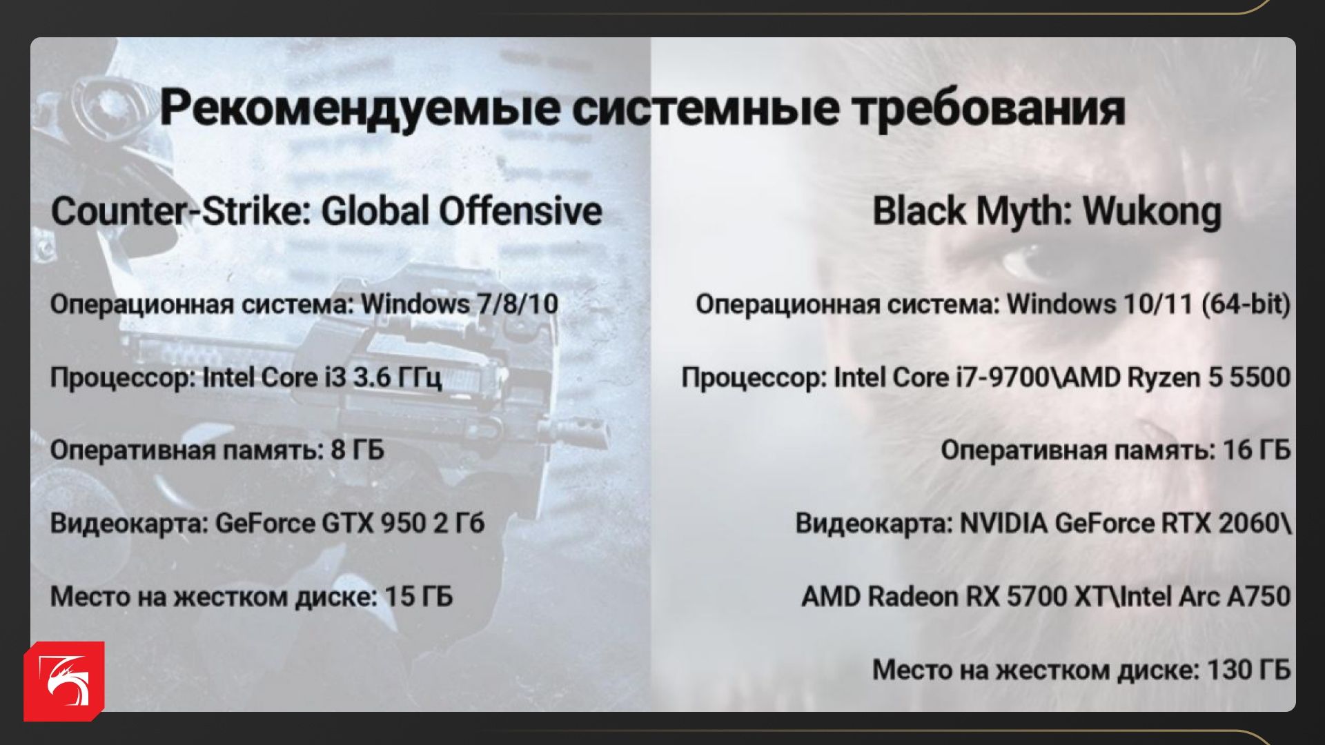 С профессиональным игроком дело обстоит иначе: для него игра — это работа, карьера, победа, успех и так далее. Здесь важна не топовая машина, а надёжная. Да и игры, представленные в кибердисциплинах, совсем не «прожорливые». Сравните.