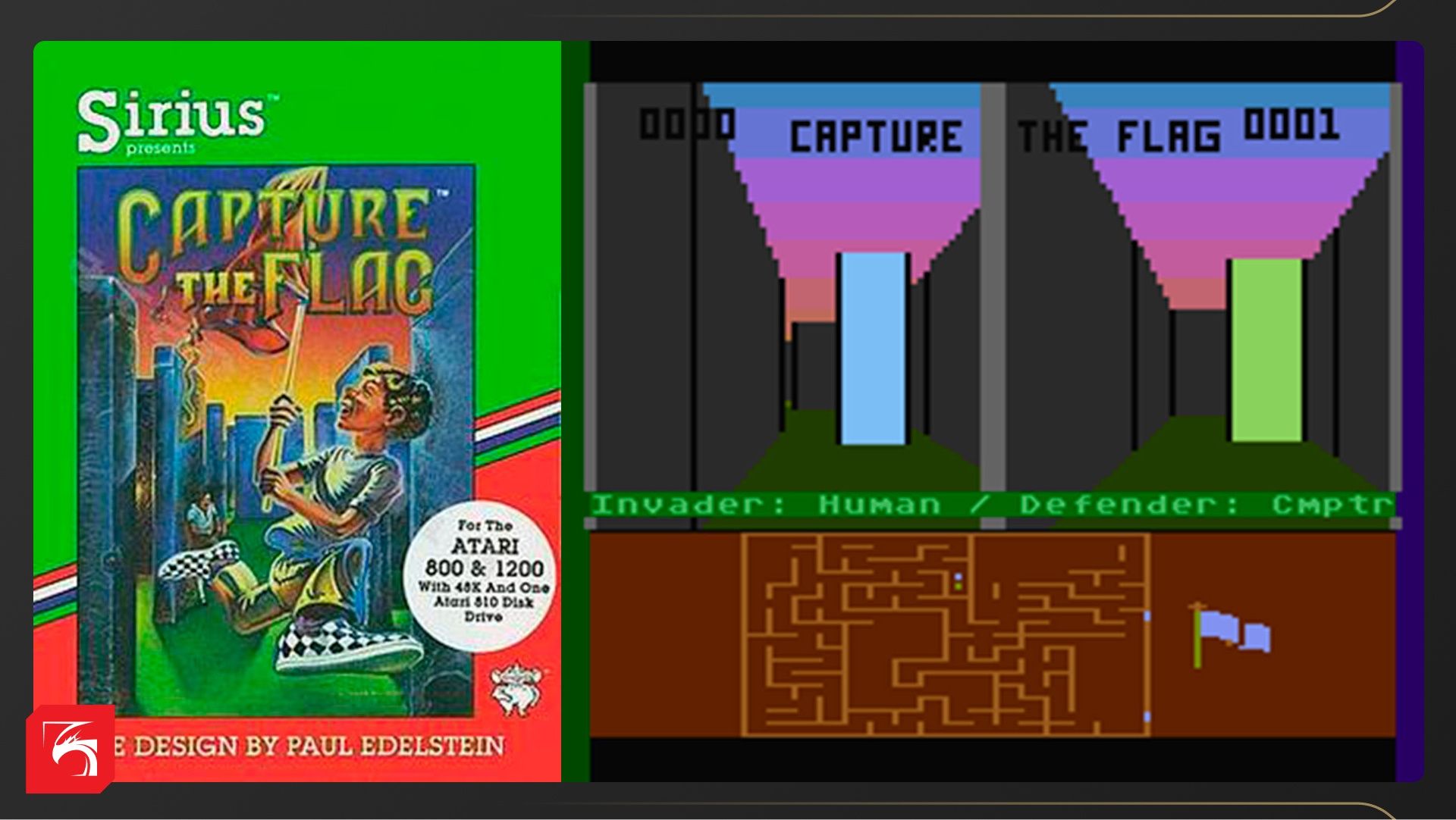 Пол Эдельштейн не остановился на достигнутом и спустя год выпустил игру Capture the Flag (1983). Название вам ничего не напоминает? Игра впервые предложила механику разделения экрана для двоих игроков. По сути, перед нами всё тот же Wayout. Один игрок должен найти выход из лабиринта или флаг. Второй же — ему всячески мешает. По сути, второй игрок выступает в роли того самого прямоугольника Cleptangle из предыдущей игры. Условия победы просты: уровень заканчивается, когда один игрок находит флаг, или второй игрок ловит первого игрока. Capture the Flag также могла похвастать качественной музыкой, что лишь усиливало азарт игроков.