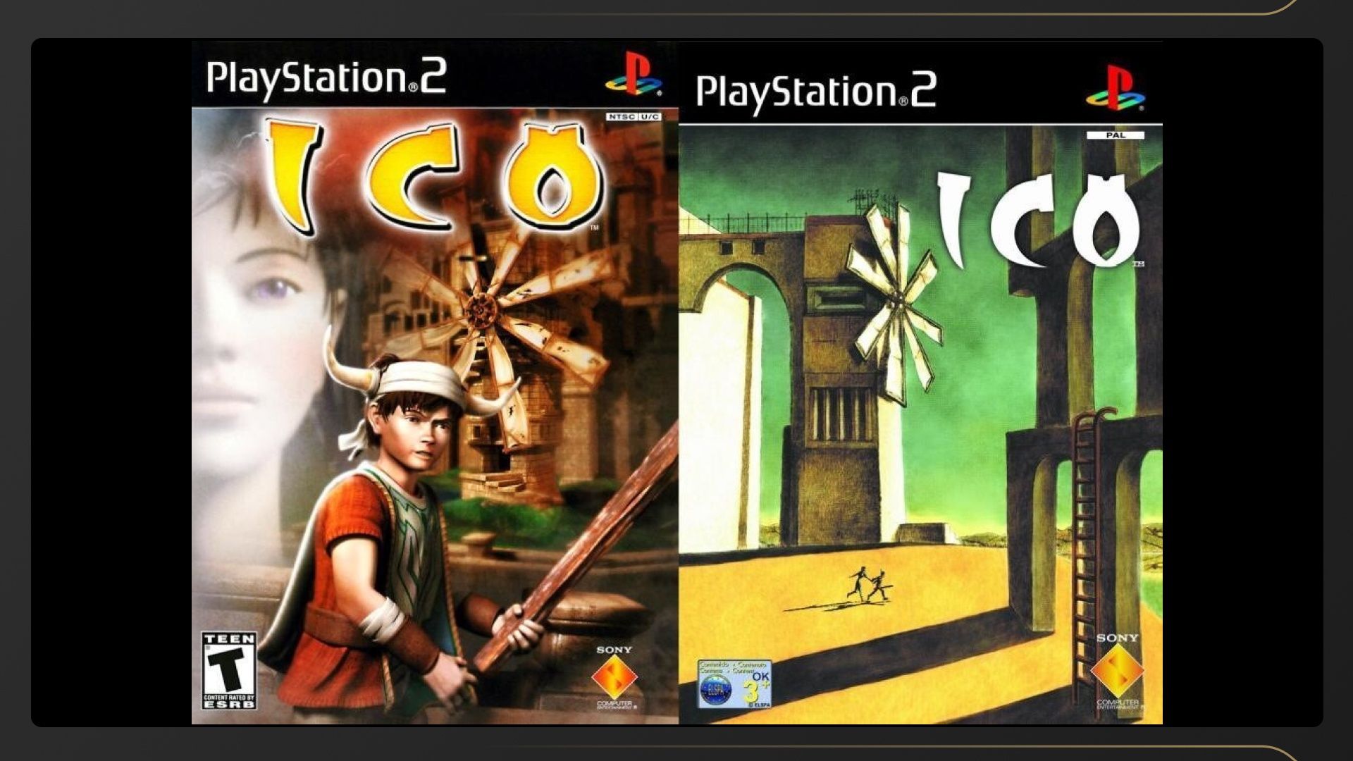 Слева — американская обложка игры. Справа — японская и европейская, вдохновлена картиной «Ностальгия по бесконечному» итальянского художника Джорджо де Кирико