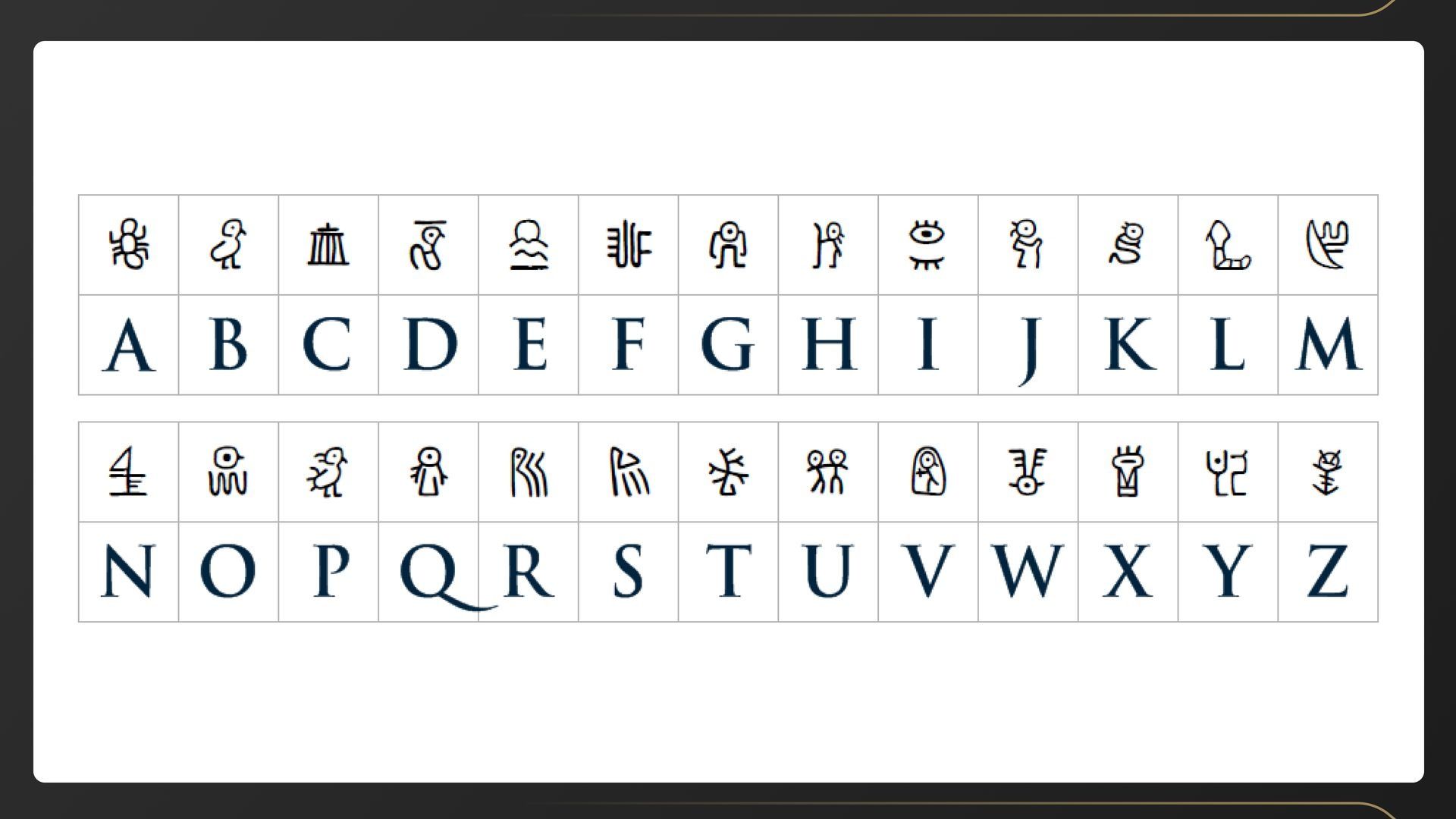 Символы соответствуют буквам алфавита