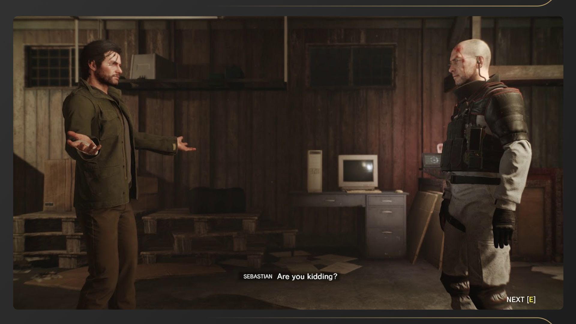 После разговора персонажи медленно поворачивают лица в сторону камеры и смотрят на игрока. Плюс неплохая игра слов: There's evil within too (The Evil Within 2).