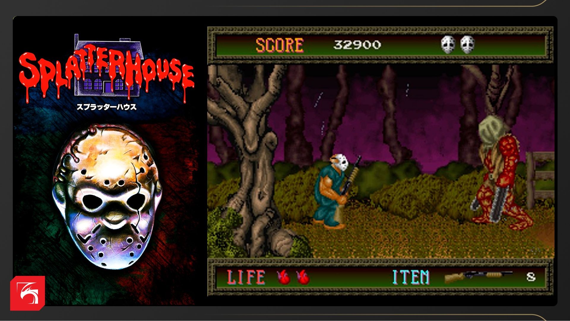 Но встречались и очень качественные с визуальной точки зрения проекты. Например, аркадная игра Splatterhouse (1988) от Namco стала настоящим прорывом для жанра. Впервые игроки увидели в игре настолько красивые спрайты, реалистичную анимацию и навороченные эффекты. Это стало возможным лишь благодаря мощному железу аркадного автомата, которое было недоступно в игровых консолях и большинстве домашних компьютеров того времени. Студент Рик Тэйлор погибает в самом начале игры, но его воскрешает «Маска ужаса», до боли напоминающая хоккейную маску Джейсона Вурхиза из «Пятница 13-е». Теперь он должен пройти семь кругов ада, чтобы спасти свою похищенную девушку Дженнифер.