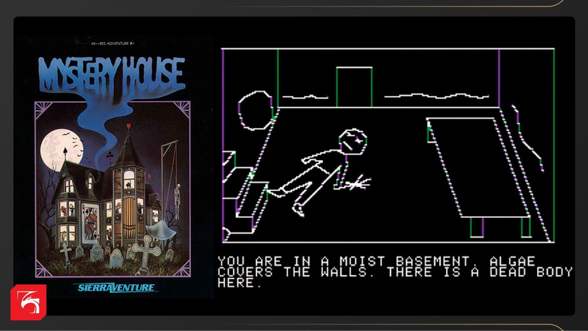 В 1980 году вышла игра Mystery House от Роберты и Кена Уильямсов — будущих основателей студии Sierra. В основу сюжета легли детективные произведения Агаты Кристи. Главный герой оказывается заперт в большом особняке с другими персонажами. Ему предстоит изучать разные комнаты, искать спрятанные драгоценности, решать загадки и разобраться — кто убивает запертых с ним людей одного за другим. Управление в игре строится на введении текстовых команд.