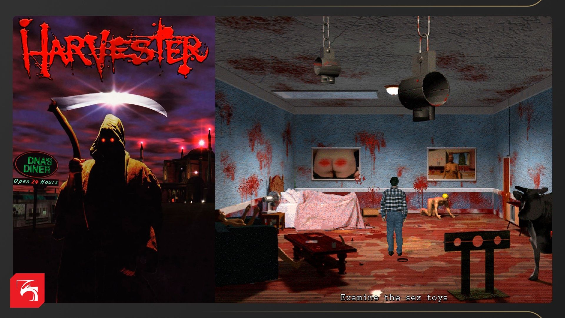 Кровавый FMV-квест Harvester (1996) погружает игрока в мрачную историю про религиозные культы. Создатель игры Гилберт Остин напихал в сценарий столько жестоких убийств, чёрного юмора, нетолерантности и прочих непотребств, что игру немедленно запретили в Германии. А многие СМИ, которые только пришли в себя после Mortal Kombat, снова принялись обсуждать тему жестокости в видеоиграх. У Harvester был очень скромный бюджет, поэтому технологиями и плохой актёрской игрой он не впечатлял. Тем не менее, у игры сформировалась большая фанатская база.