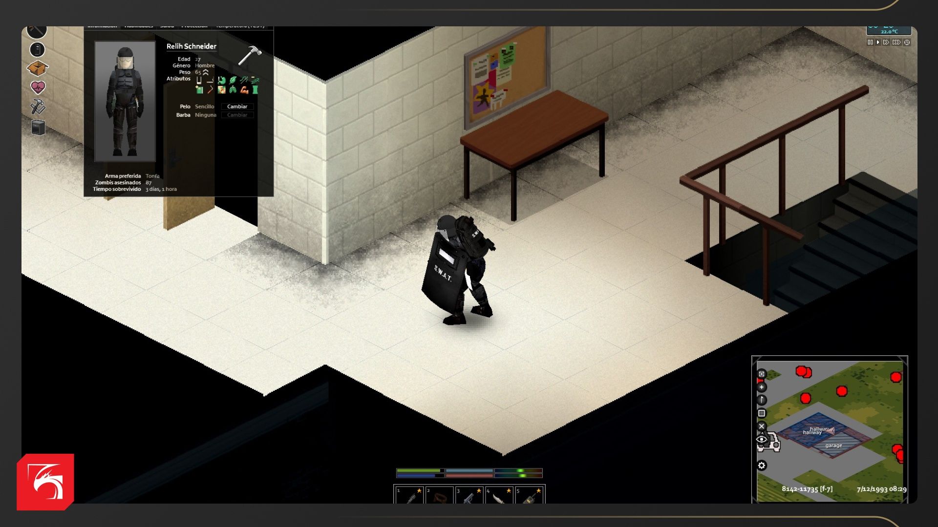 В начале игры нужно создать персонажа: выбрать его внешность, профессию, черты характера, обязательные недостатки и преимущества. Профессия влияет на стартовую локацию и набор навыков. Например, пожарный с большей вероятностью появится на пожарной станции. В Project Zomboid большое количество уникальных механик. Например, зависимость персонажа от никотина. Её можно получить если регулярно курить сигареты. Также здесь очень интересная система прокачки. Чтобы повысить уровень отдельных навыков, нужно штудировать книги и смотреть обучающие видео. Это отнимает у персонажа много времени, но в итоге усилия многократно окупаются. Зомби достаточно умны, они слышат даже негромкие звуки и умеют выламывать двери и заколоченные окна. Спрятаться от них непросто, а игрок постоянно находится в состоянии напряжения и тревоги.