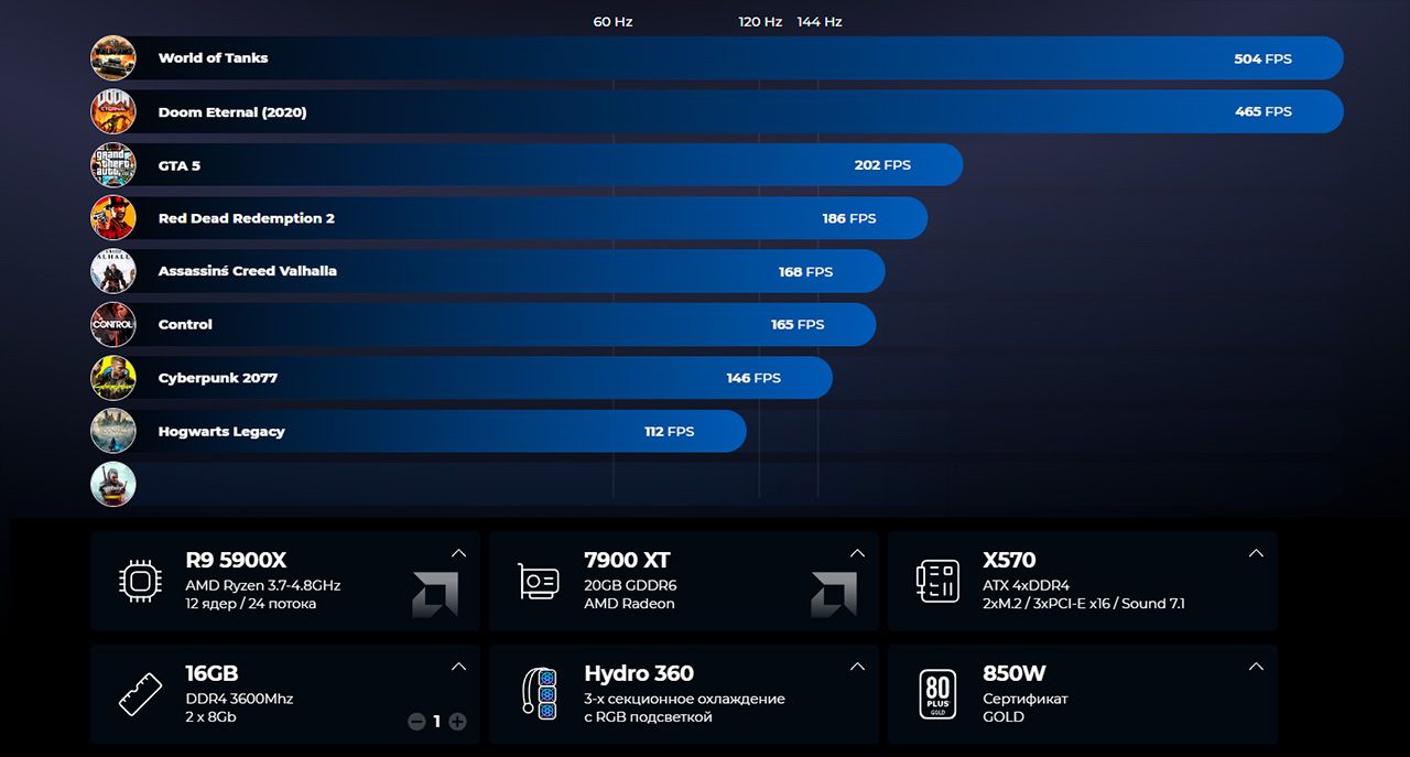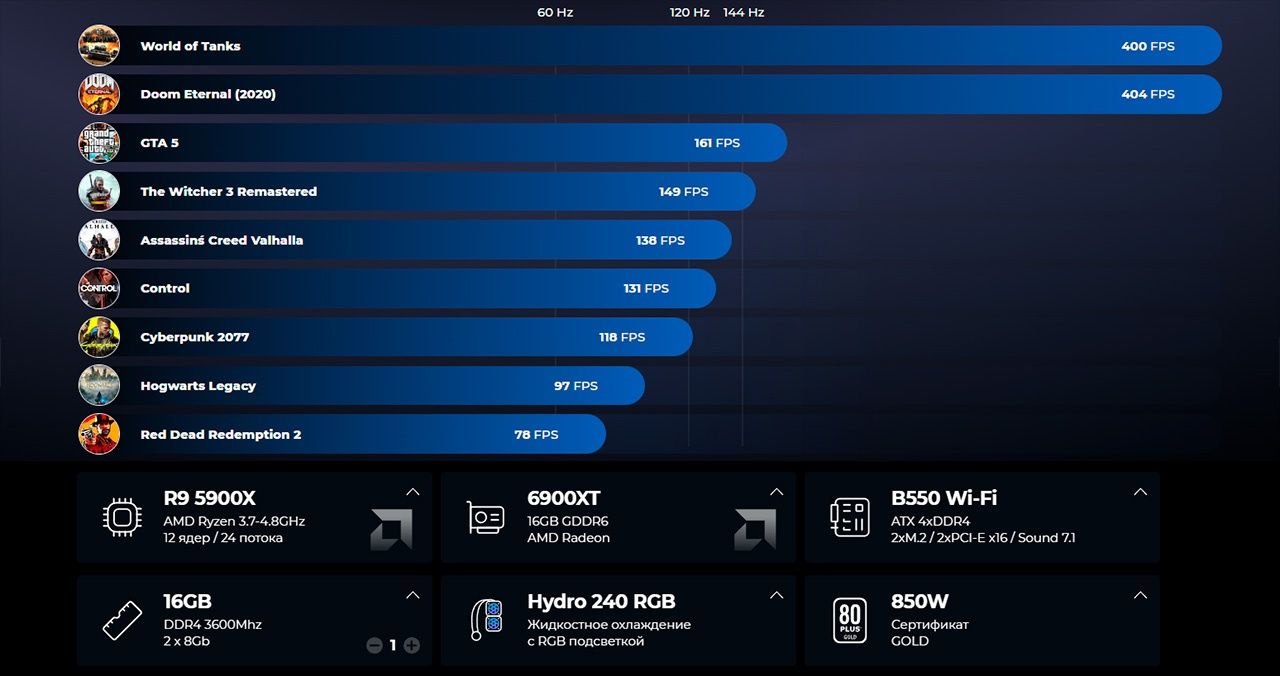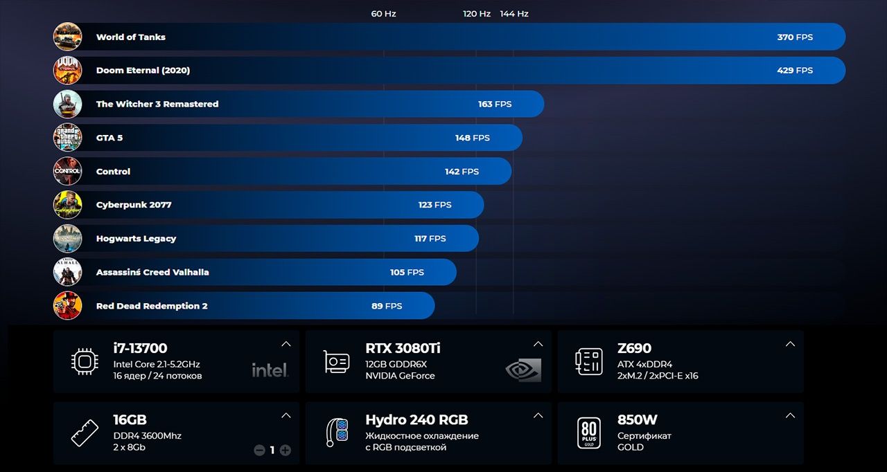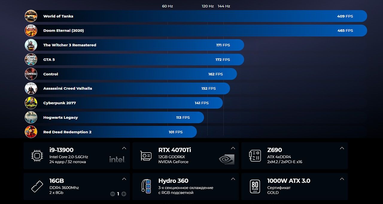 Посмотреть на такую конфигурацию и оценить, какую кадровую частоту она способна обеспечить в интересующем игровом проекте, можно по этой ссылке.