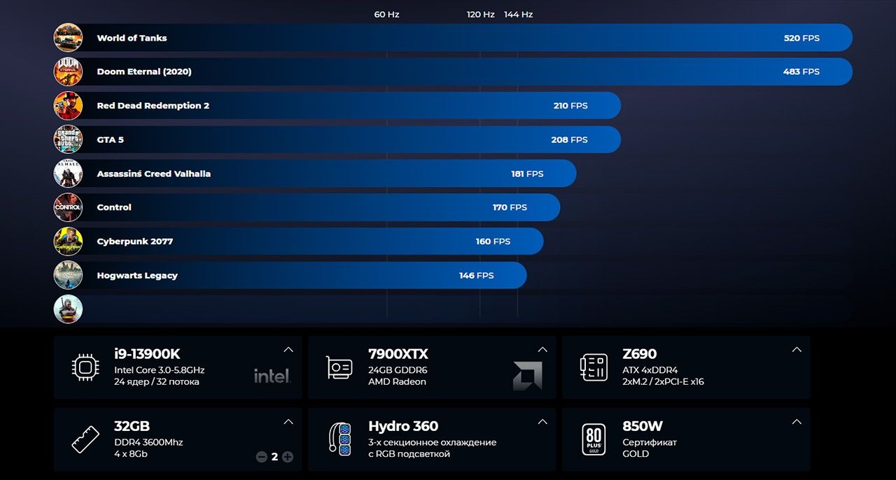 Здесь уже нужны более производительные комплектующие из верхнего ценового сегмента. В итоге, конфигурация будет выглядеть примерно так: