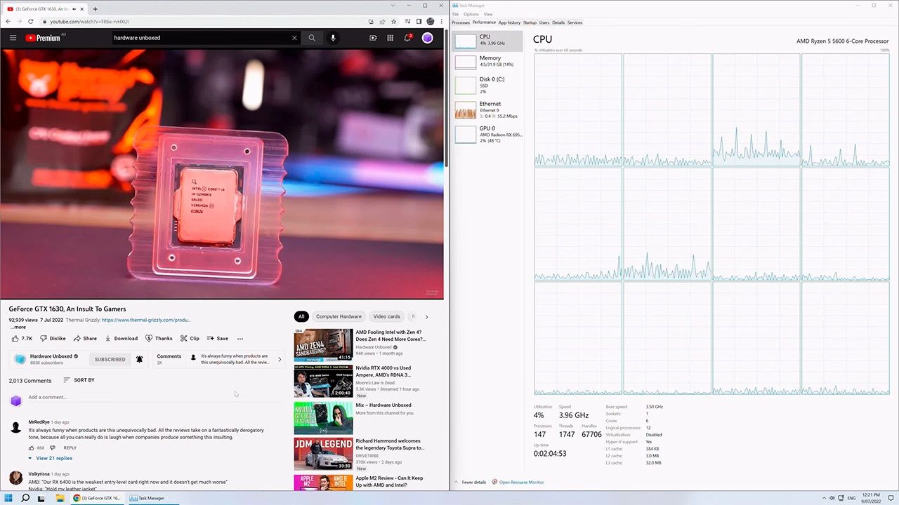 В этом материале разберёмся, правдиво ли это утверждение. Для теста возьмём упомянутые выше Ryzen 5 5600 и Ryzen 7 5700X и сравним их в гейминге с активными фоновыми задачами. Самыми распространёнными как раз и есть видео на YouTube (в виде музыки или подкастов на втором экране), а также Discord с несколькими активными серверами и голосовым чатом.