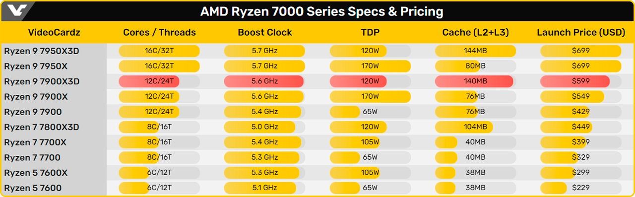 - AMD Ryzen 7000X3D – лучше всех в играх, но: нагрев ещё больше, ощутимо уступают в рабочих задачах и многопоточных приложениях, дорогие платы;