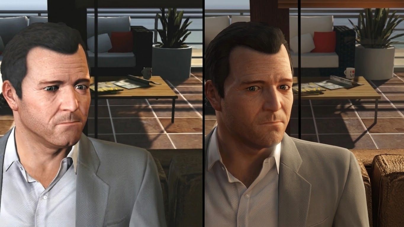 Разница между текстурами и освещением в GTA 5 Legacy (слева) и Enhanced (справа)