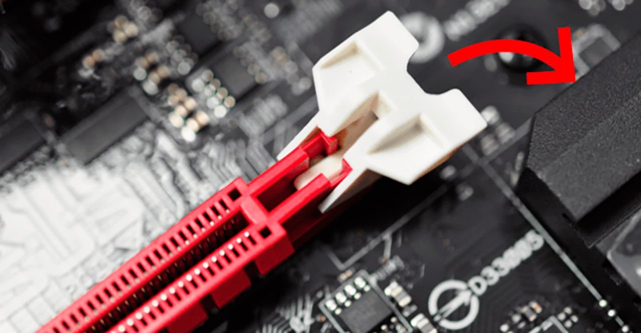 К примеру, у видеокарты есть крючок рядом со слотом для подключения. За крюк цепляется защёлка и фиксирует видеоадаптер. Если защёлку не сдвинуть и силой вырвать видеокарту – возможна трещина текстолита в районе крючка, а это обрыв дорожек, это «приехали». Подобные пришествия не редкость.