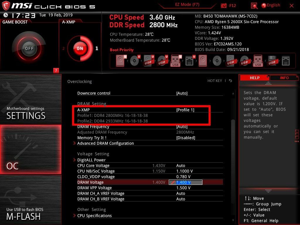 - Активация профилей оперативной памяти (XMP для Intel и EXMO у AMD);