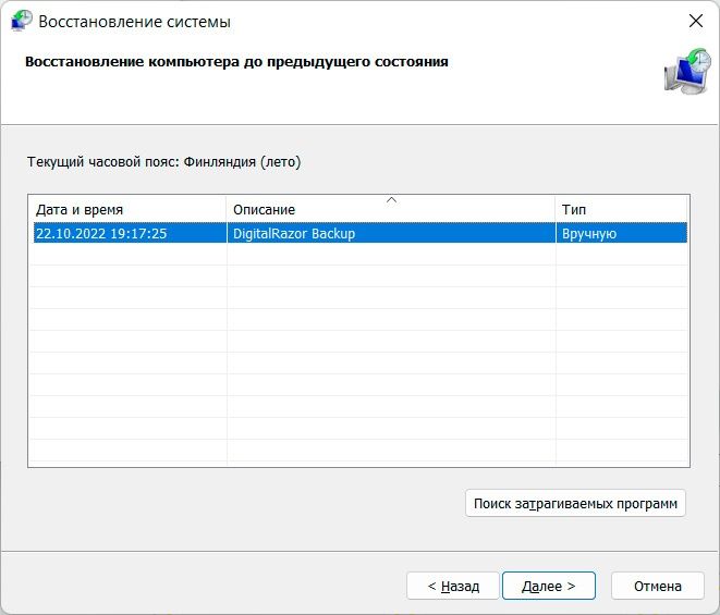 Это точка, в которой сохранено состояние системы: обновления, драйверы, системные файлы, реестр. В случае неполадок с помощью точки восстановления можно вернуться к тому состоянию системы, которое было в тот момент. Такая точка хранит только базовые данные. Личные файлы, программы и их настройки не сохранятся.
