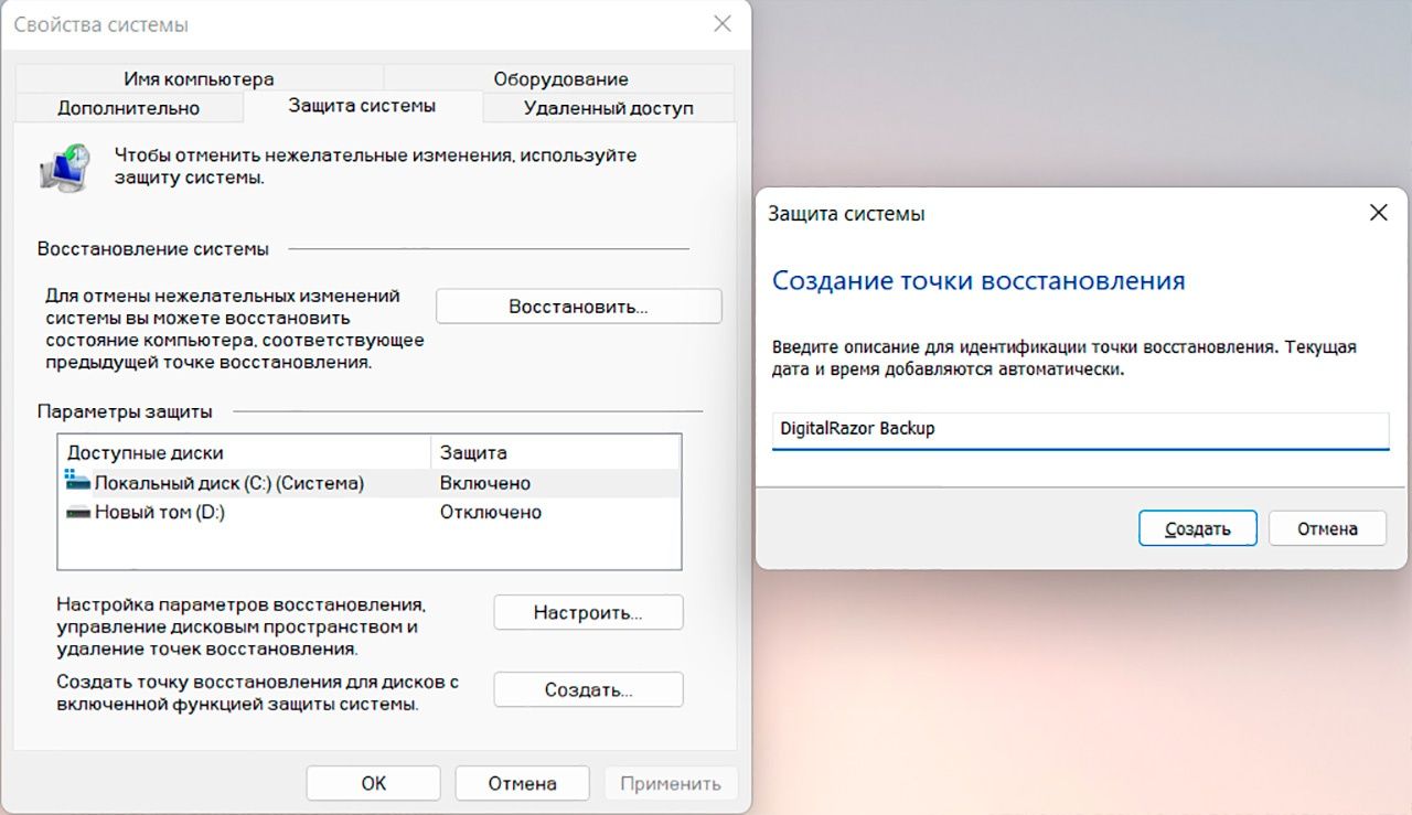 Готово, теперь у вас есть точка восстановления. Она пригодится, если ПК стал работать с ошибками.