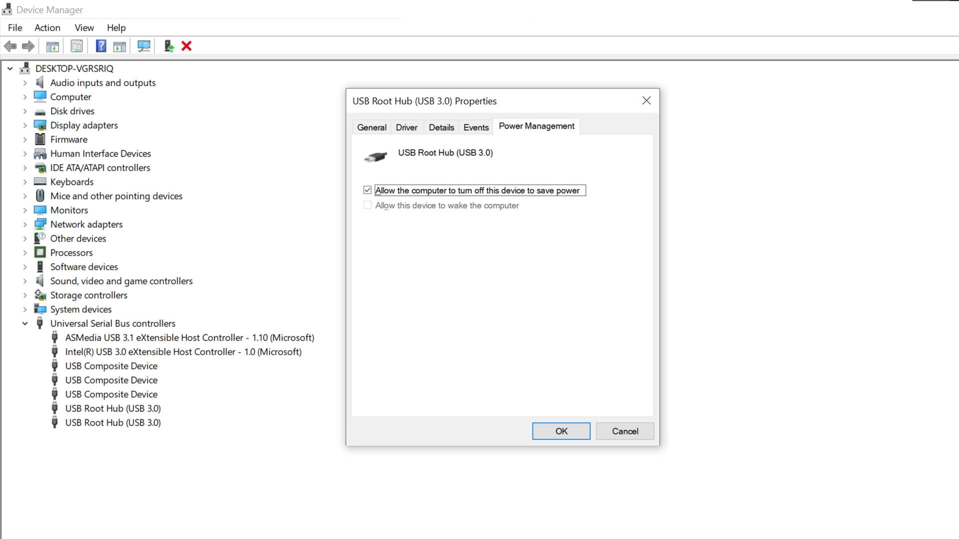 Отключение энергосбережения для USB-портов