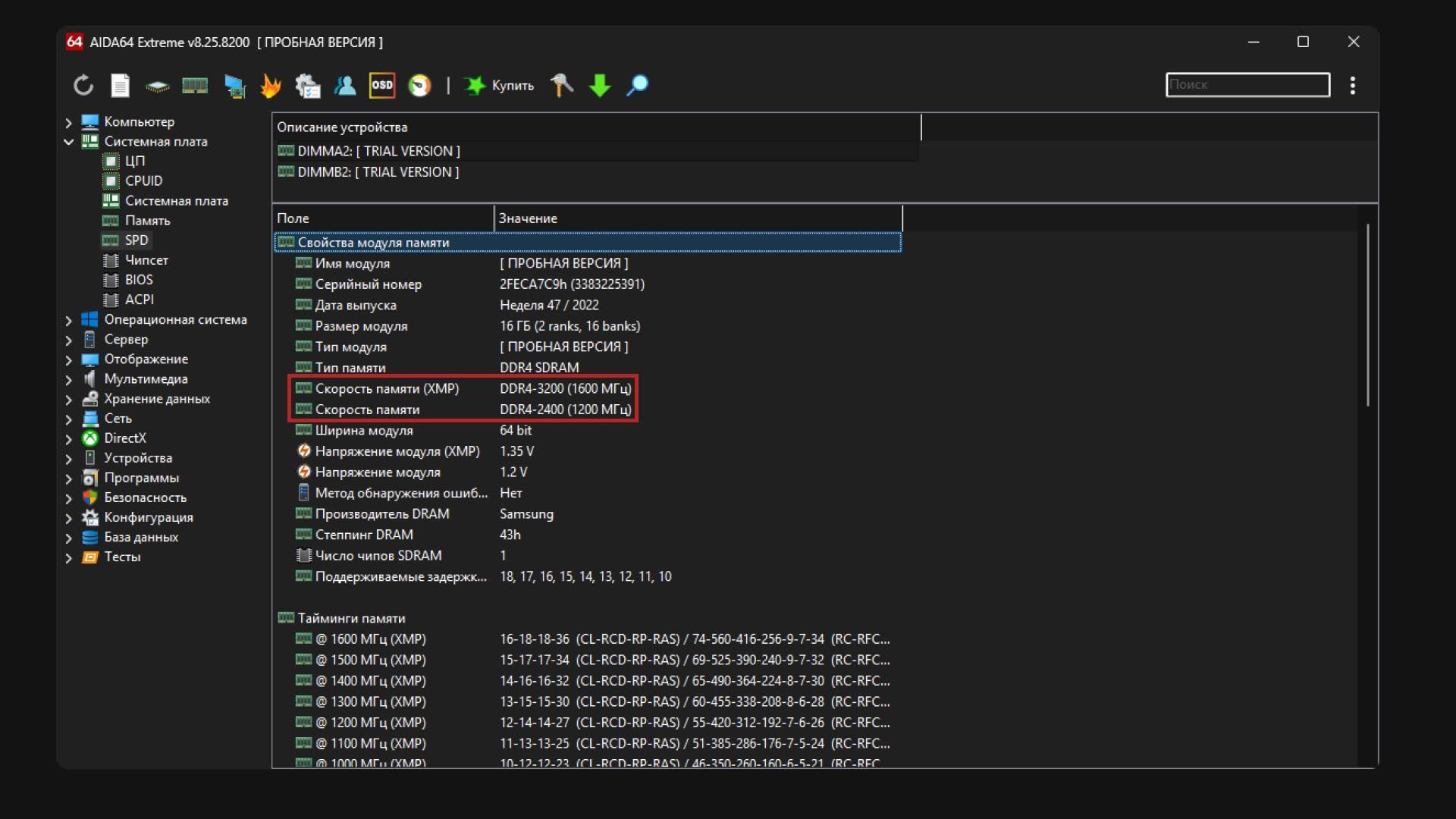 Проверка частоты (скорости) ОЗУ через AIDA64