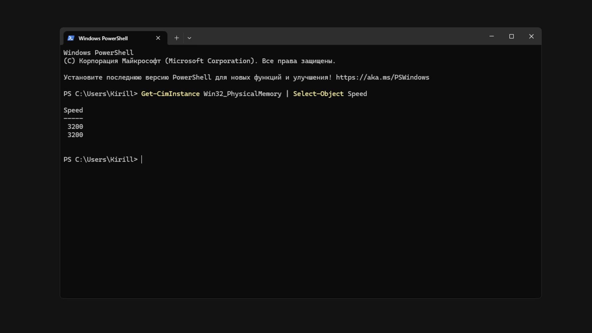 Проверка частоты (скорости) ОЗУ через Windows PowerShell