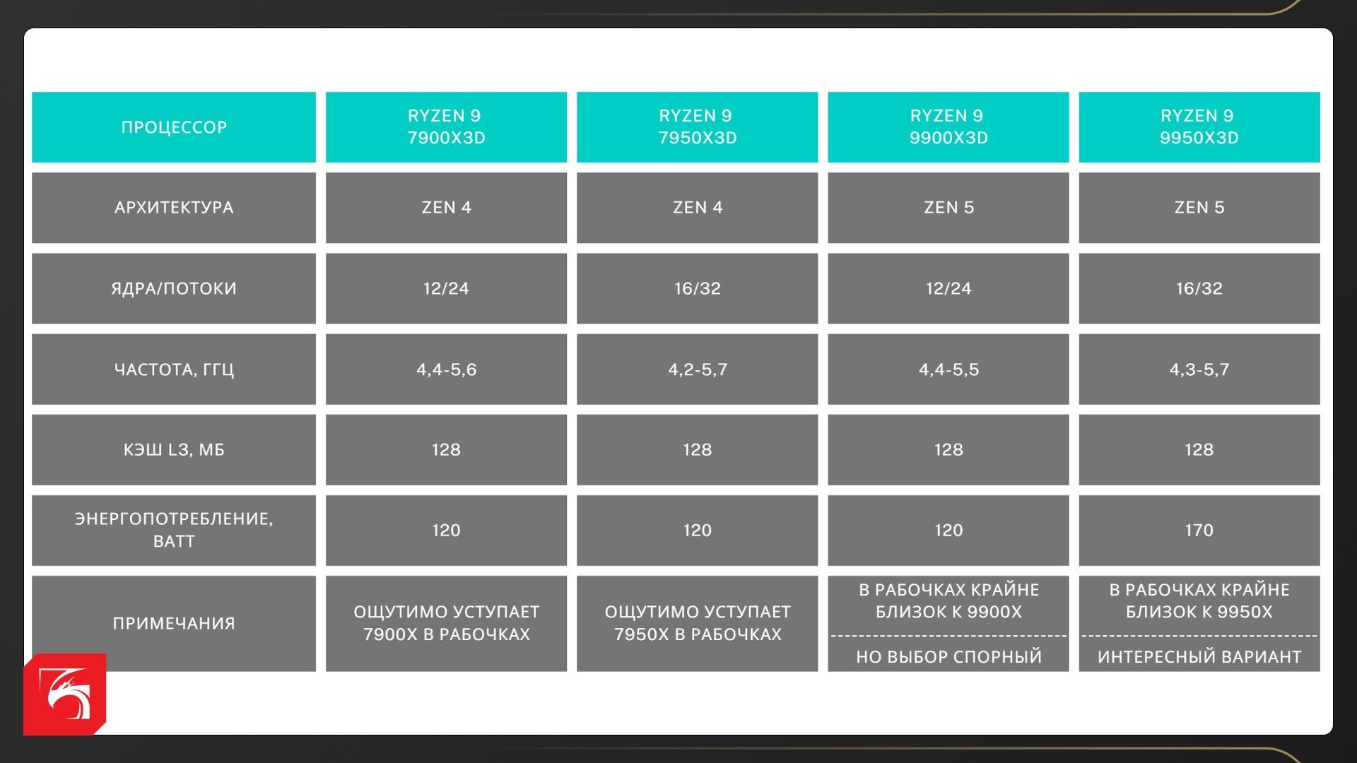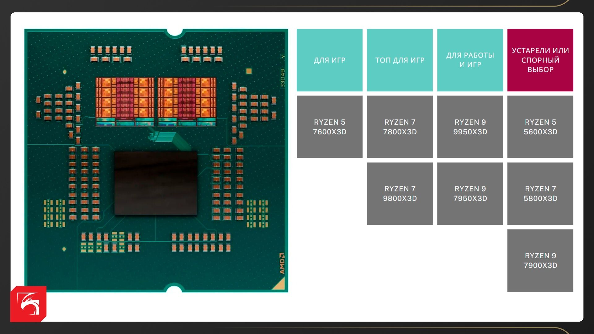 Впоследствии AMD выпустила сверхуспешные Ryzen 7 7800X3D и Ryzen 7 9800X3D — лучшие игровые чипы, доступные на сегодняшний день. А совсем недавно появились 12- и 16-ядерные Ryzen 9 9900X3D и Ryzen 9 9950X3D — избыточные для игр, зато очень любопытные для рабочих станций. Впрочем, это уже совсем другая история.