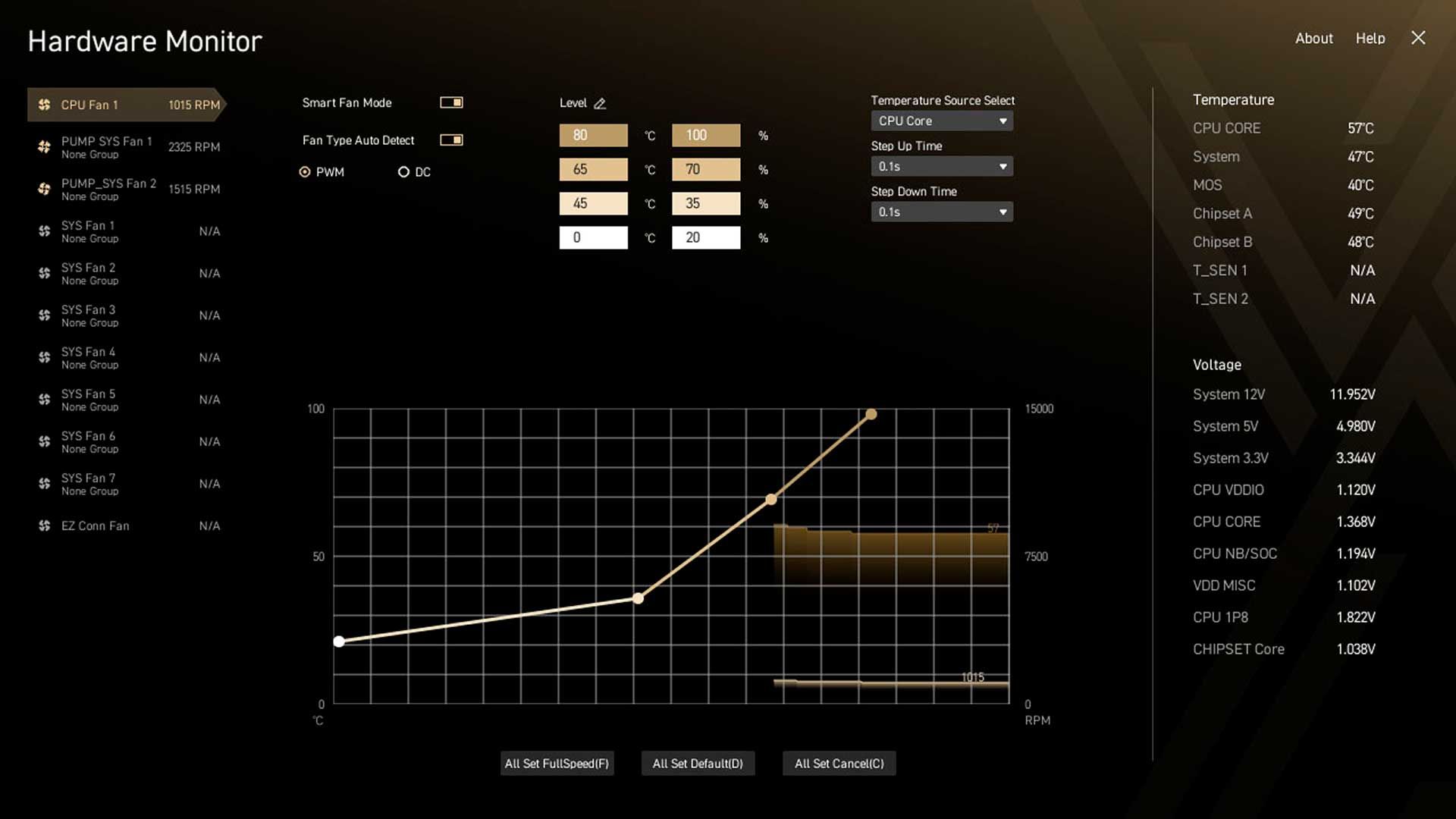 Фактически, BIOS показывает базовый уровень тепла. Как правило, 30–50 градусов. Для измерений под нагрузкой нужно возвращаться в ОС и пользоваться утилитами. Тем не менее, проверить температуру в BIOS полезно, чтобы убедиться, что система справляется с температурой на «холостом» ходу. Перезагрузитесь, зайдите в настройки материнской платы, найдите секцию Hardware Monitor или PC Health — там будет строка с цифрой CPU Temp или CPU Temperature.