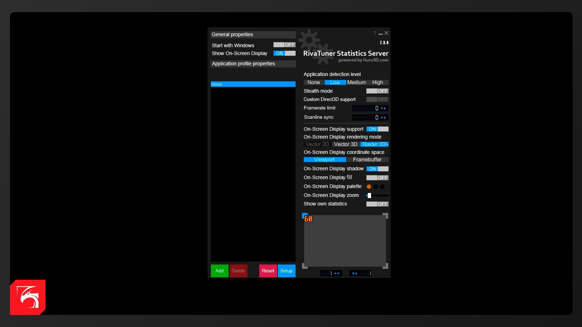 Её интерфейс куда аскетичнее. И тут можно хорошенько отвести душу: поиграть со шрифтами, включить или выключить рамочку оверлея, настроить порядок отображения параметров в списке. Например, счётчик FPS убрать вниз, а температуру процессора и видеокарты вывести наверх.