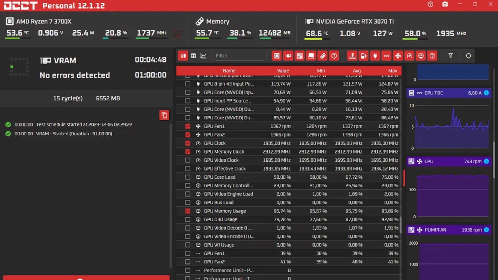 Проверять GPU можно и на реальных играх. Например Cyberpunk 2077 или Alan Wake 2. Включи мониторинг через MSI Afterburner и играй минимум 30–60 минут. Именно в играх часто проявляются проблемы с резкими скачками частот (transient spikes), которые могут вырубать слабый блок питания. Смотри на плавность графика времени кадра (frametime). Рывки и статтеры могут говорить не только о проблемах игры, но и о перегреве памяти или VRM.