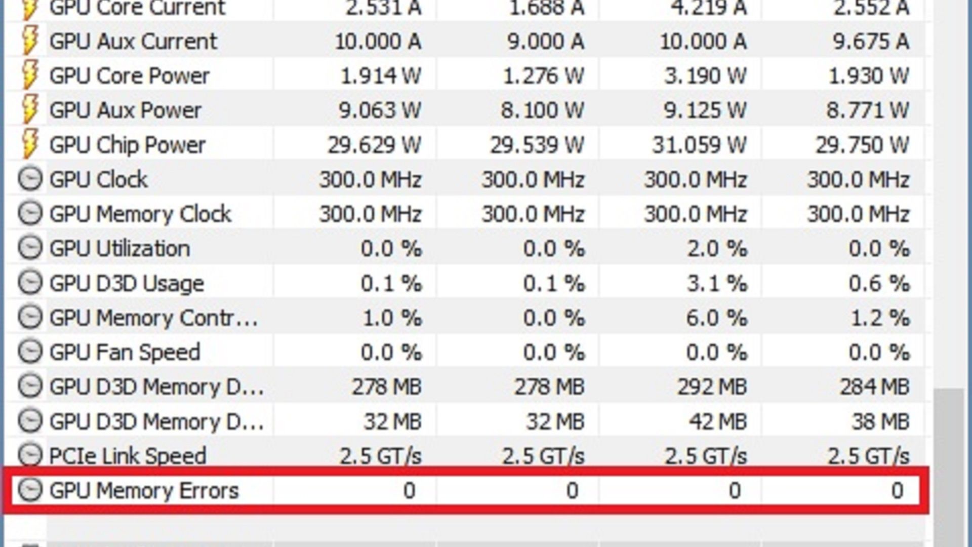 - Важный параметр Windows Hardware Errors (WHEA) в самом низу списка. Если там появляются цифры отличные от нуля — видеокарта работает нестабильно.
