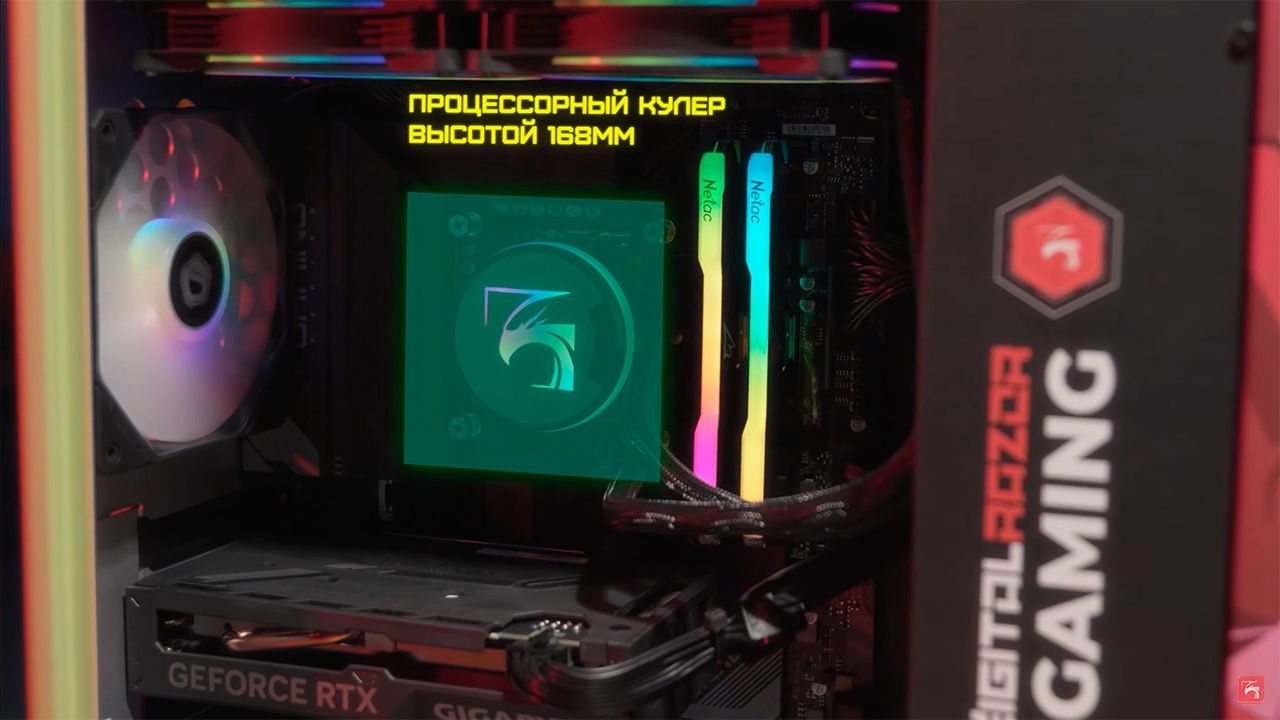 - Процессорный кулер высотой до 168 мм – почти любой;