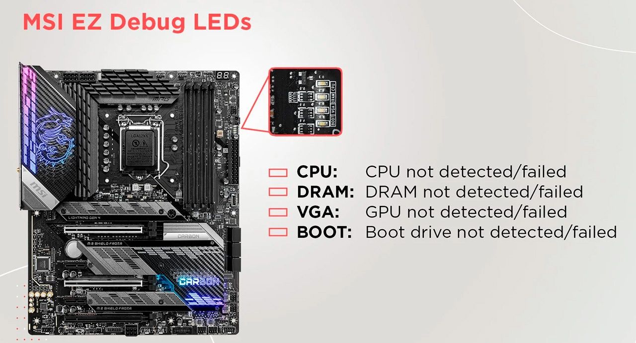 Одна из таких – полноценный индикатор POST-кодов или его упрощённая версия – набор диодов Q-LED. Они показывают, с каким конкретно компонентом системы есть проблемы, мешающие запуску.