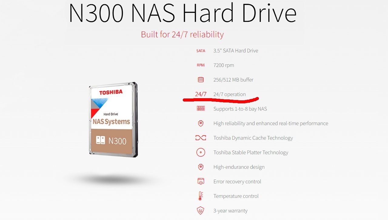 Здесь речь не про позиционирование (для NAS/систем видеонаблюдения/серверов/домашнего использования), а про режим работы. Бывают диски с режимом не более 8 часов в сутки, бывают 24/7. Круглосуточные – то, что нужно.