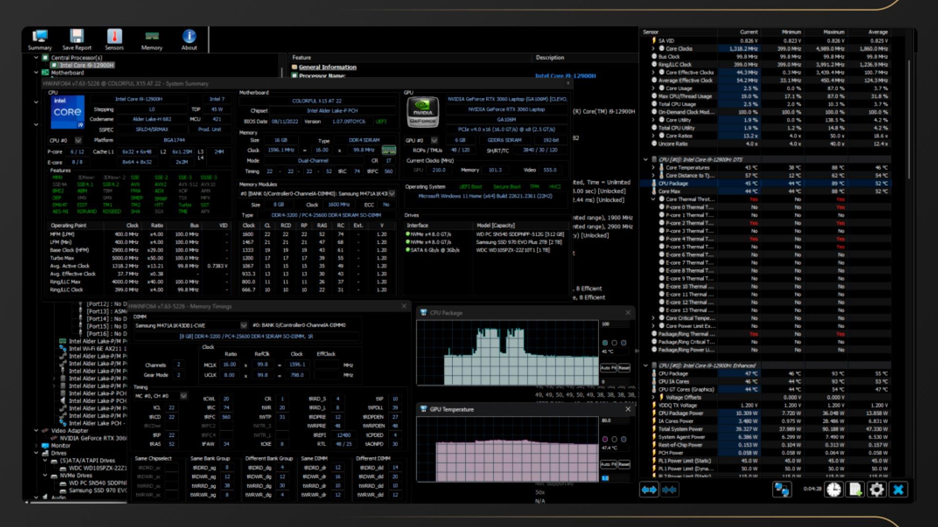 Обязательно следите за температурами и напряжениями в процессе разгона. Для этого используются приложения HWiNFO, HWMonitor, CPU-Z, CoreTemp или фирменные утилиты материнских плат, которые показывают важные параметры в реальном времени.