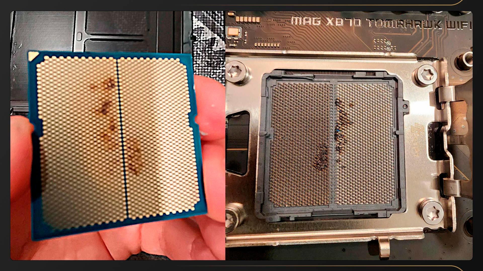 Такое случается крайне редко. Но при слишком сильном разгоне возможны физические повреждения железа. Известны случаи, когда несоблюдение лимитов или ошибки в прошивке BIOS приводили к тому, что напряжения оказались чрезмерными. Из последних примеров — Ryzen 7 9800X3D. Процессор физически выгорал, как и контакты разъёма.