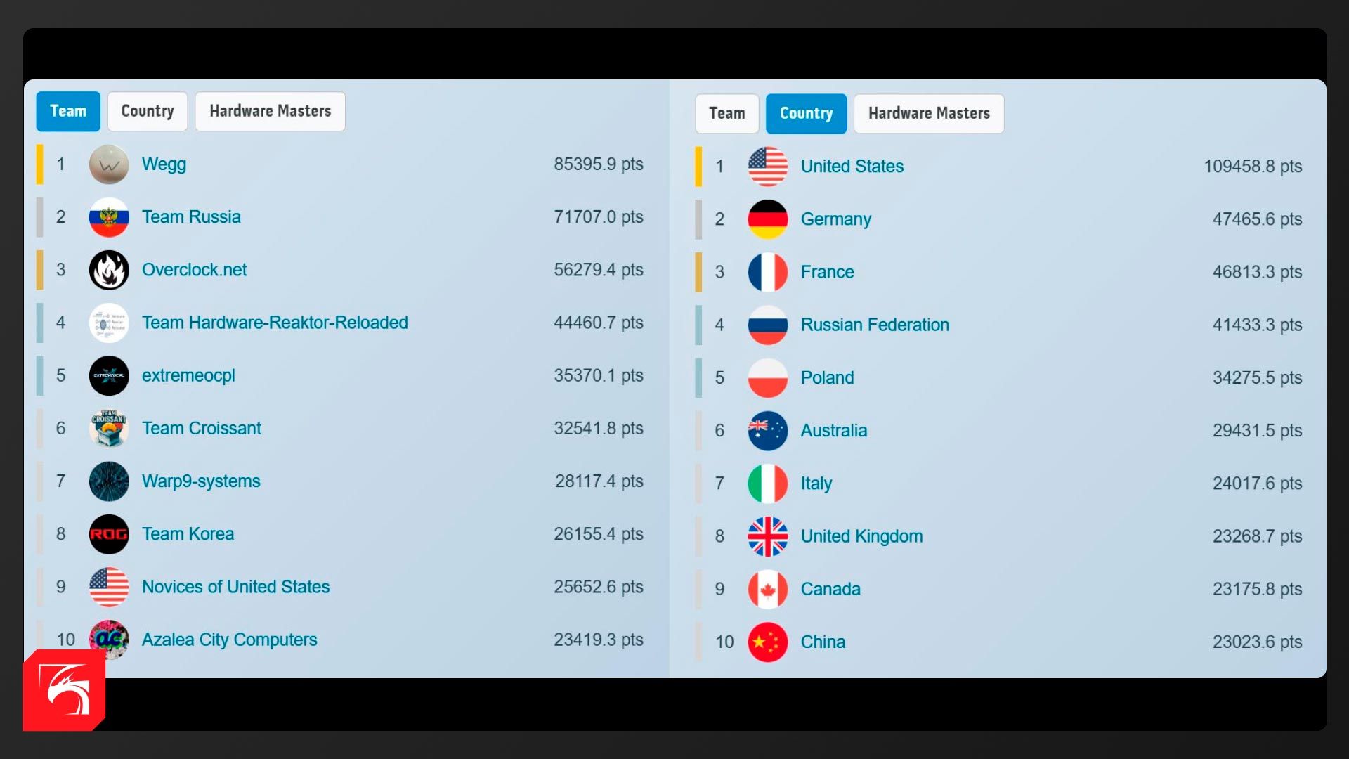 Лига HWBOT — святая святых оверклокеров. Здесь мастера и любители разгона соревнуются в достижениях и делятся опытом. Между прочим, России тоже есть, чем гордиться. В командном зачёте Team Russia занимает второе место, а в рейтинге стран Россия на четвертой позиции. Внести свой вклад может каждый. Баллы в командном зачёте начисляются не только за мировые рекорды с участием RTX 5090, но и за старенькие GTX 1060.