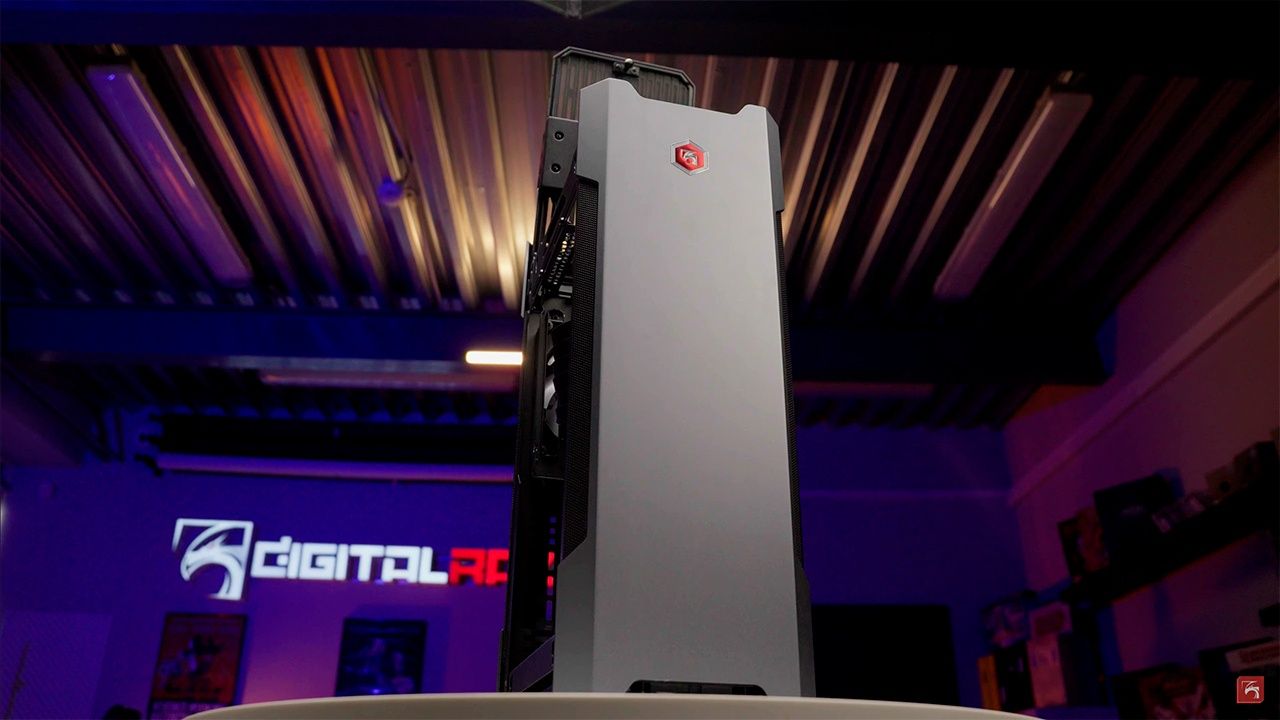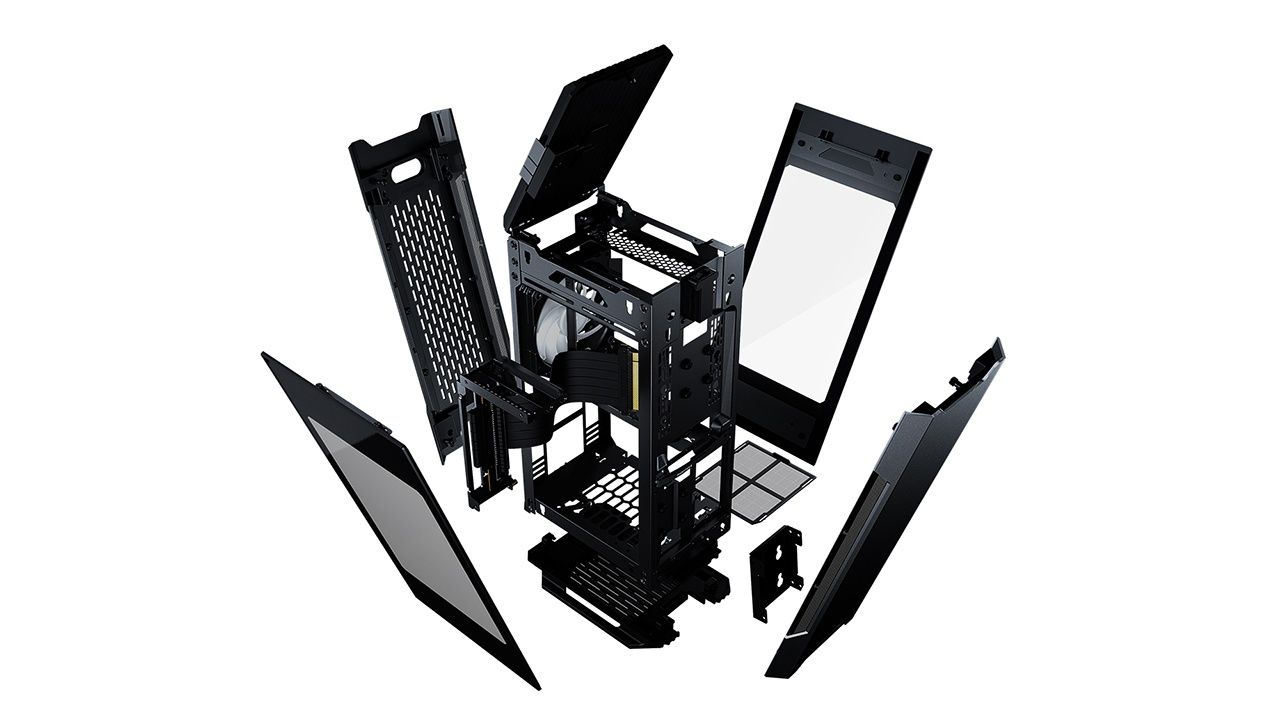 Стильный, можно даже сказать футуристичный корпус выполнен из алюминия (2 внешние панели), стекла (2 внешние панели) и стали (рама). Закалённое боковое стекло стандартной толщиной 4 мм установлено по обоим бокам. С учётом необычной расстановки комплектующих внутри смотрится весьма интересно, особенно видеокарта.