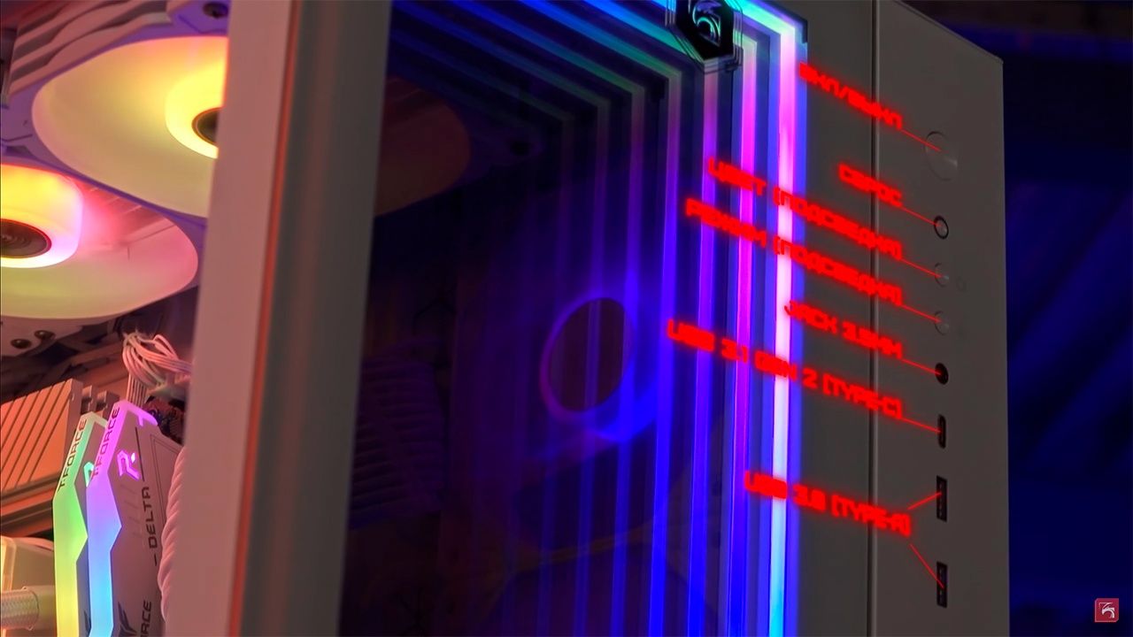 Об охлаждении поговорили, теперь о красоте. Подсветка с эффектом бесконечного зеркала Infinity Mirror регулируется кнопками на фронтальной панели. Можно переключить цвет или режим, настроить под себя.