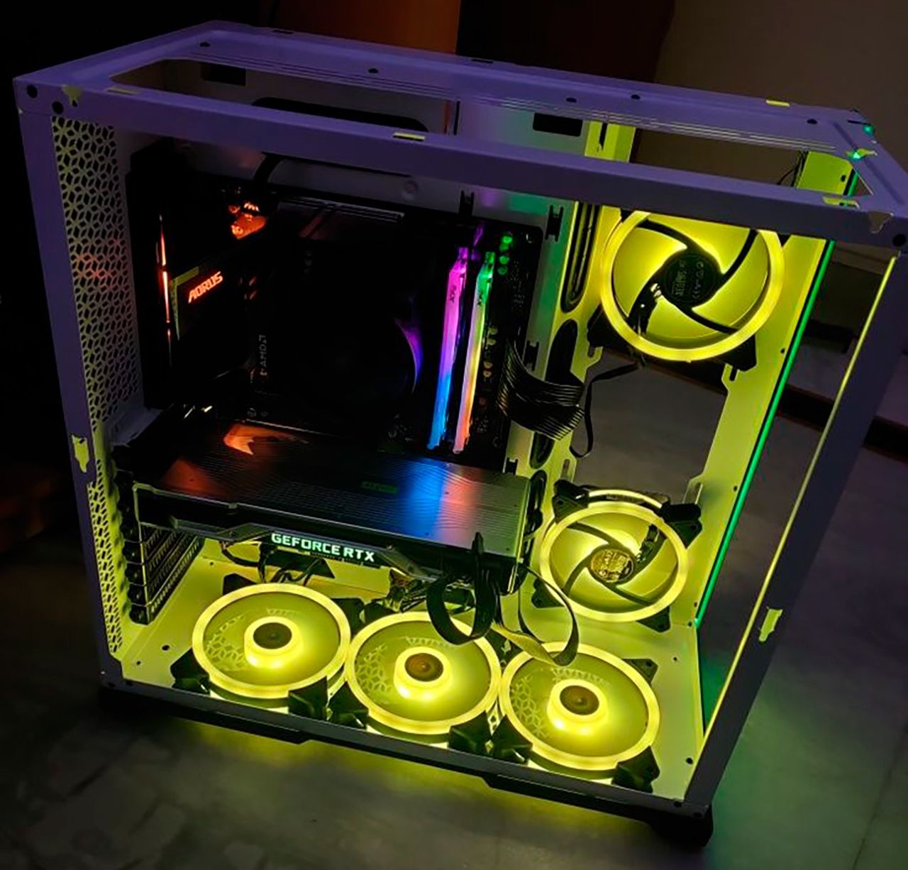 Однако важно помнить, что во всём нужна мера. Корпус со всеми вентиляторами превратится в ARGB-ёлку. Ну и цена (каждый минимум по 500 рублей). И чем их больше, тем больше уровень шума. Дешевые пропеллеры быстрее изнашиваются, сильнее шумят, а надёжные тихоходные модели стоят в 2-3 раза дороже. Поэтому при выборе корпуса важно понимать, что придется вложить ещё пару тысяч рублей в красоту, ну или не брать такой открытый корпус. К слову, про правильный выбор корпусных вентиляторов есть отдельная статья.