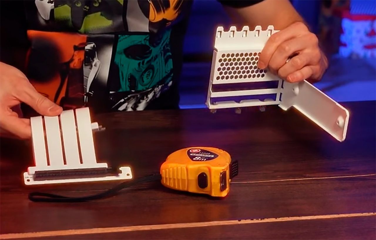 Например при установке видеокарт старше примерно GeForce RTX 4070 (с большой высотой) корпус просто не закроется, и потребуется райзер для вертикальной установки. В нашем случае установлена GeForce RTX 4080 как раз с помощью райзера. Минус тут только в стоимости шлейфа для подключения, а в комплект он не входит. Зато к внешнему виду однозначно добавляет плюсик.