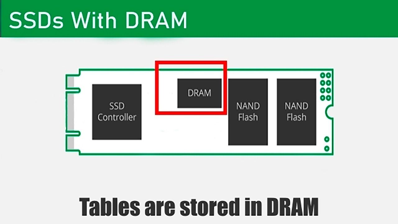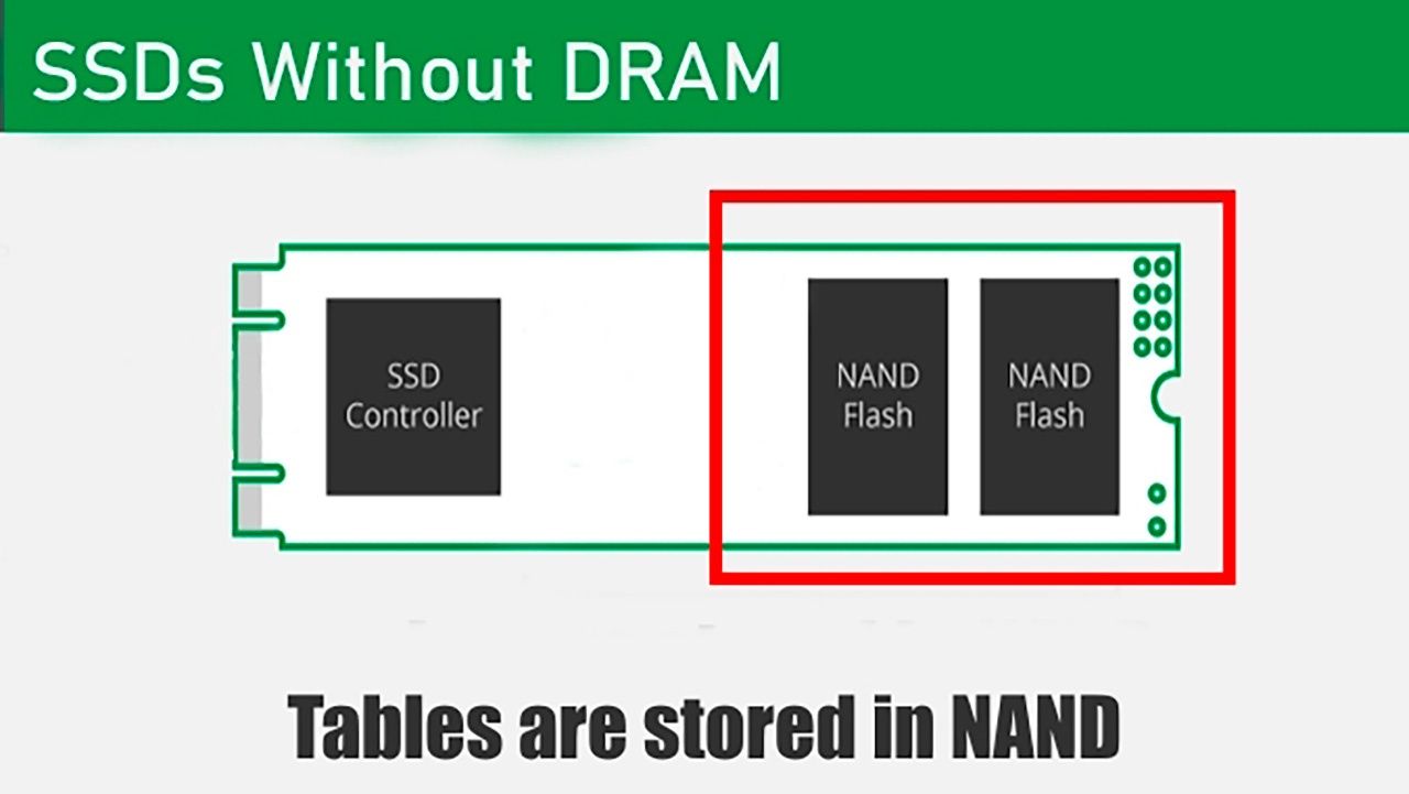DRAM-less – допустимый вариант. В сценарии компьютера для игр разница относительно моделей с чипом ОЗУ небольшая.
