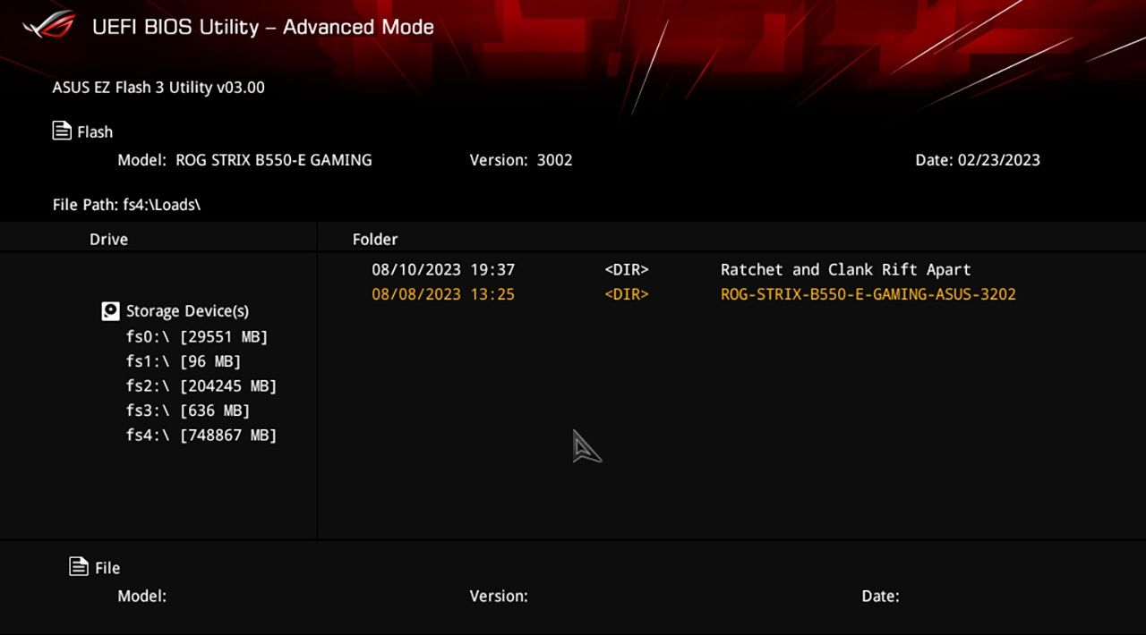 После необходимо указать файл BIOS. Хотя в мануалах от производителей говорится о надобности переноса файла нового BIOS на флешку, в действительности это делать не обязательно.