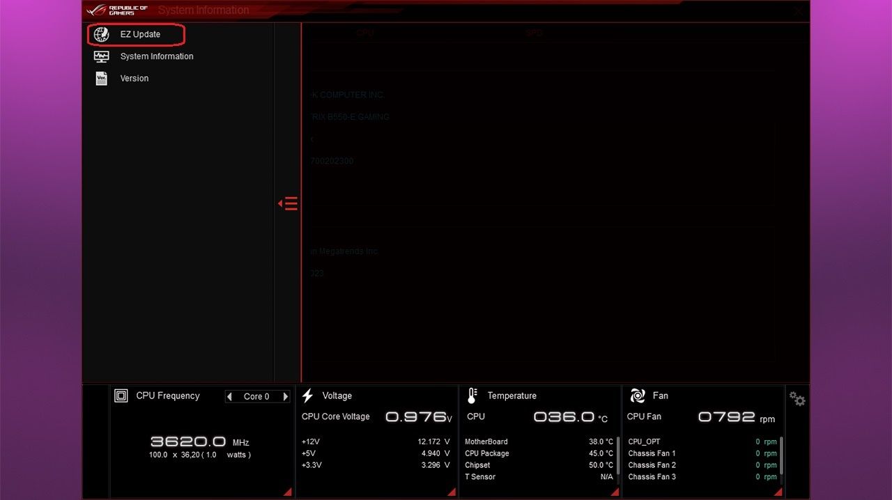 Сперва AI Suite 3 нужно установить и запустить. Далее в открывающемся меню слева выбрать EZ Update. В нижней части окна можно указать файл готового BIOS, если он уже скачан. В верхней есть кнопка «Check Now» для полностью автоматического поиска и установки новой прошивки. Важно отметить, что таким образом обновиться не только BIOS, но и вообще всё, касающееся материнской платы.