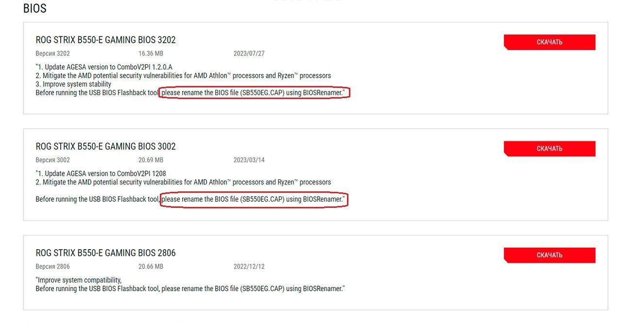 В примечаниях к каждой версии BIOS в обязательном порядке написано, как он должен называться для перепрошивки этим методом. Можно переименовать вручную, а можно воспользоваться программой BIOSRenamer. Она всегда идёт в папке с каждой версией BIOS.
