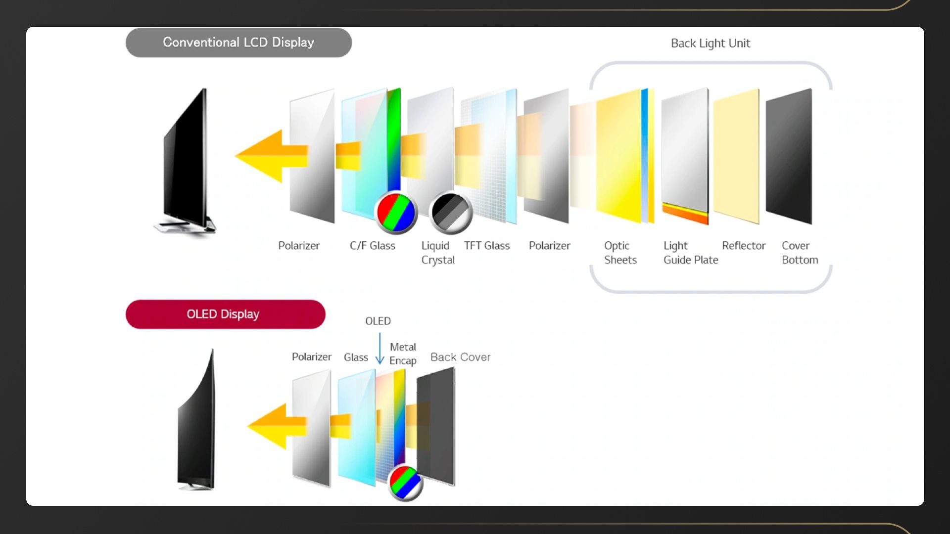 Ключевое отличие OLED от остальных технологий в том, что подсветка встроена прямо в матрицу. У других вариантов подсветка фоновая, а у OLED светится сам пиксель. Поэтому управление подсветкой попиксельное.