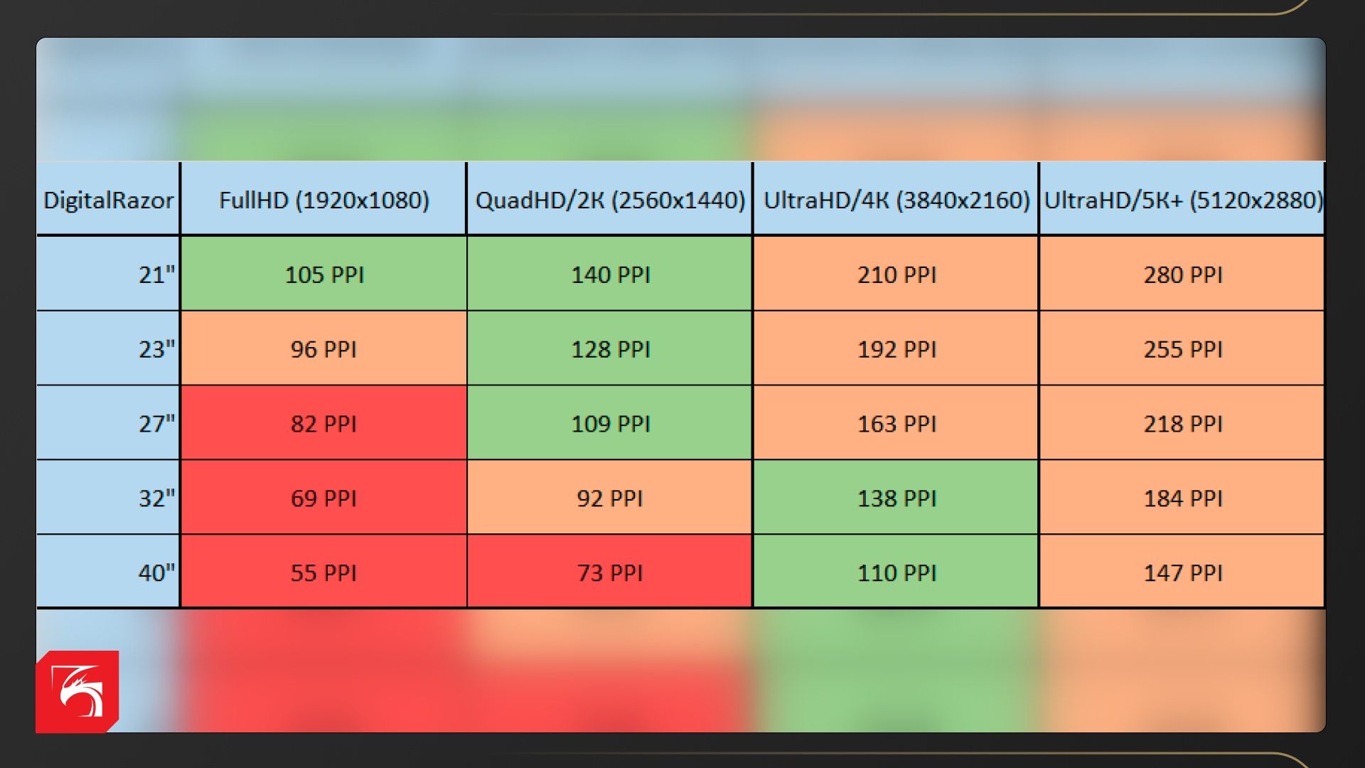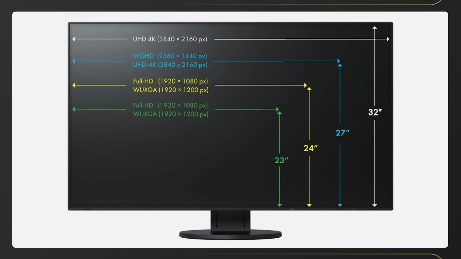 Есть негласный закон: плотность пикселей компьютерного монитора должна быть более 90 PPI (пикселей на дюйм). Если PPI меньше — будут заметны отдельные пиксели и «лесенки» на изображениях. Если больше — хорошо, но при плотности более 140 пикселей на дюйм разница практически незаметна.