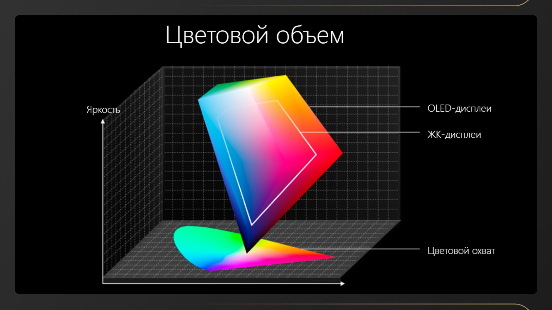 Никакая другая матрица и близко не стоит рядом с OLED в плане насыщенности чёрного. При этом отображение других цветов тоже на высочайшем уровне.