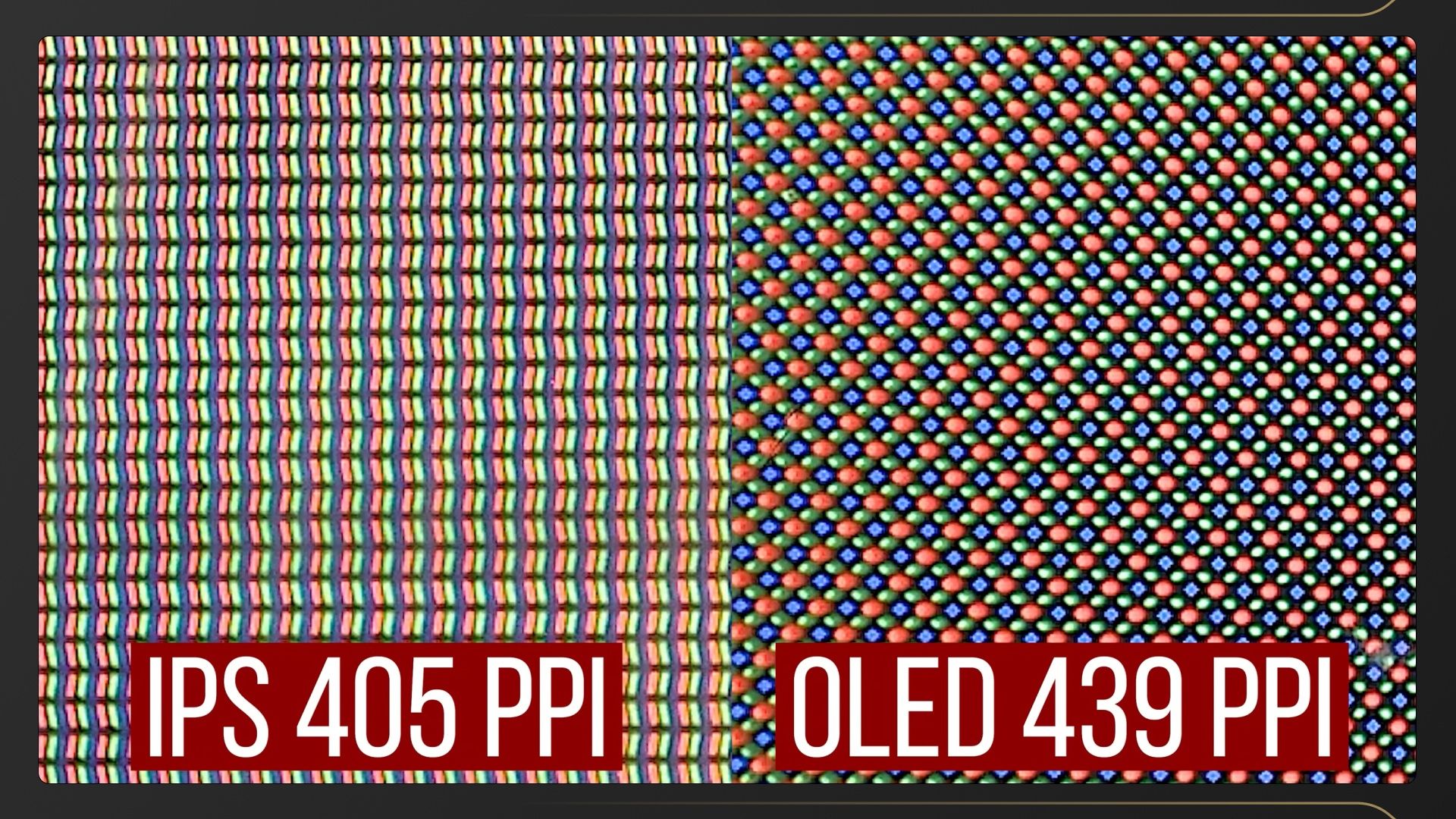 Ещё один момент — OLED нужен запас плотности пикселей. При одинаковом разрешении и диагонали у OLED плотность пикселей будет меньше, чем у других матриц. Звучит странно и как-то нематематично. Всё дело в большем межпиксельном расстоянии. Грубо говоря, у OLED сам пиксель меньше.