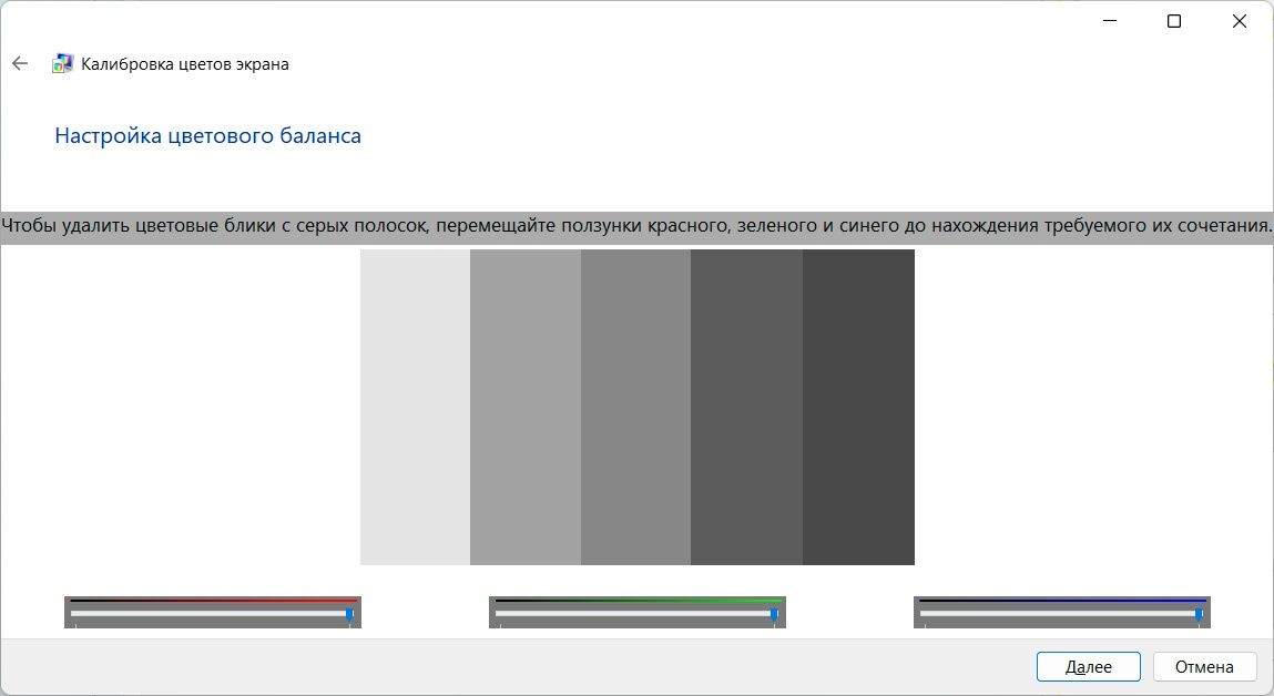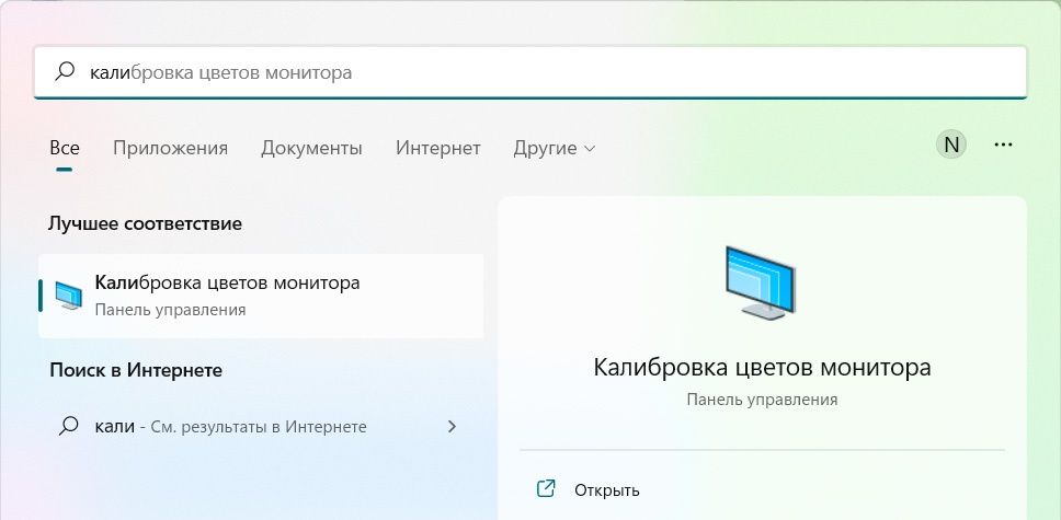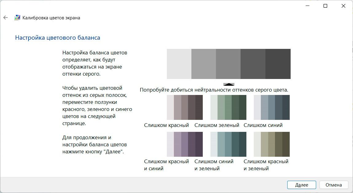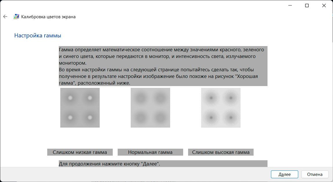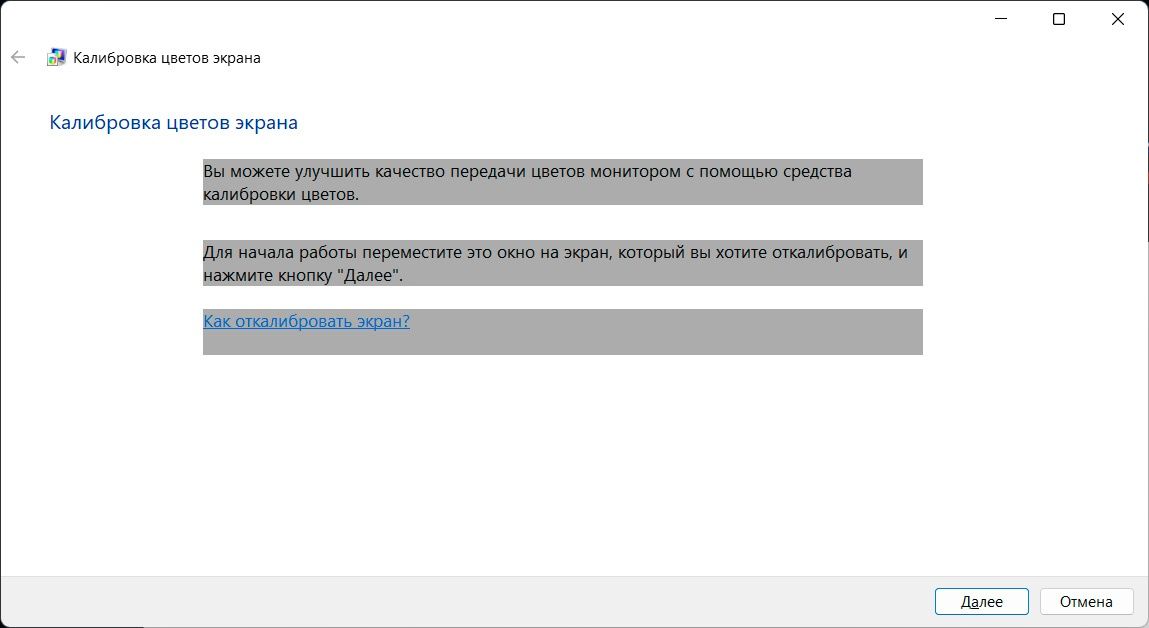 Найдите в поиске Windows «Калибровка цветов монитора» → «Далее».