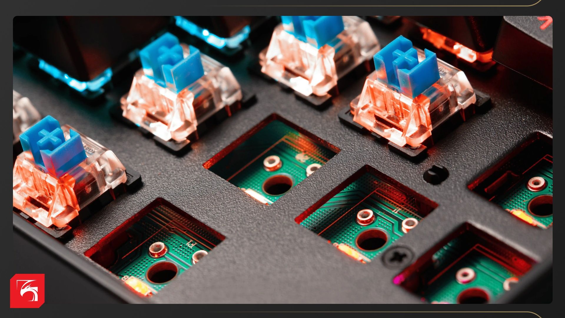 Тип переключателя. Всего существует три типа переключателей: линейные, тактильные и щелчковые. Линейный тип считается самым лучшим по времени отклика. Переключатель двигается вверх и вниз, быстро возвращается в исходное положение, не даёт тактильной обратной связи и не издает громкого звука. Тактильные переключатели обеспечивают обратную связь, создавая эффект упругого нажатия и отскок при обратном ходе. Они идеально подходят для набора текстов. Щелчковые переключатели работают так же, как тактильные, но при этом издают отчетливый звук щелчка. У разных производителей переключатели отличаются техническими характеристиками. Поэтому лучше всего опробовать нажатия лично.