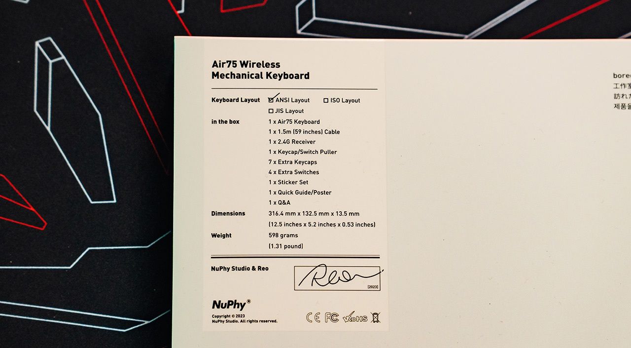 Театр начинается с гардероба, клавиатура – с упаковки, и здесь NuPhy Air75 V2 сразу заходит с козырей. Дизайн коробки описывать не будем, сразу к содержимому.