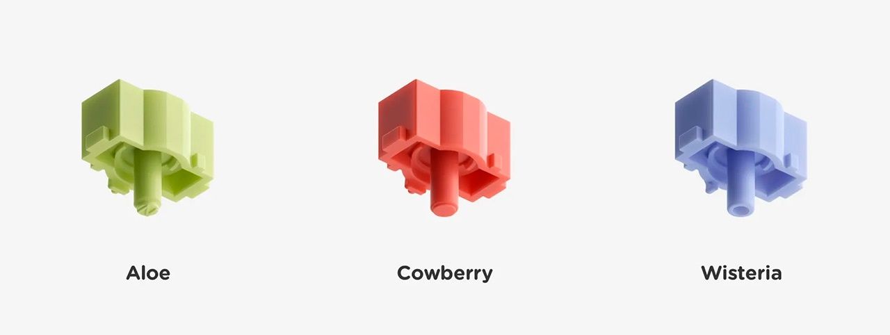 NuPhy Air75 V2 предлагается в вариантах с переключателями типа Aloe, Wisteria и Cowberry – зелёными, синими и красными по-простому говоря.