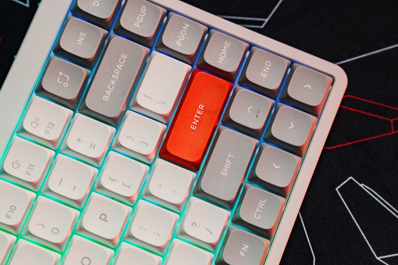 Компоновка просто обычная для клавиатур формата 75%. «F1» строго над «1», левый «Shift» длинный, «Enter» одноэтажный. Никаких дополнительных клавиш нет, едва-едва основные влезли.