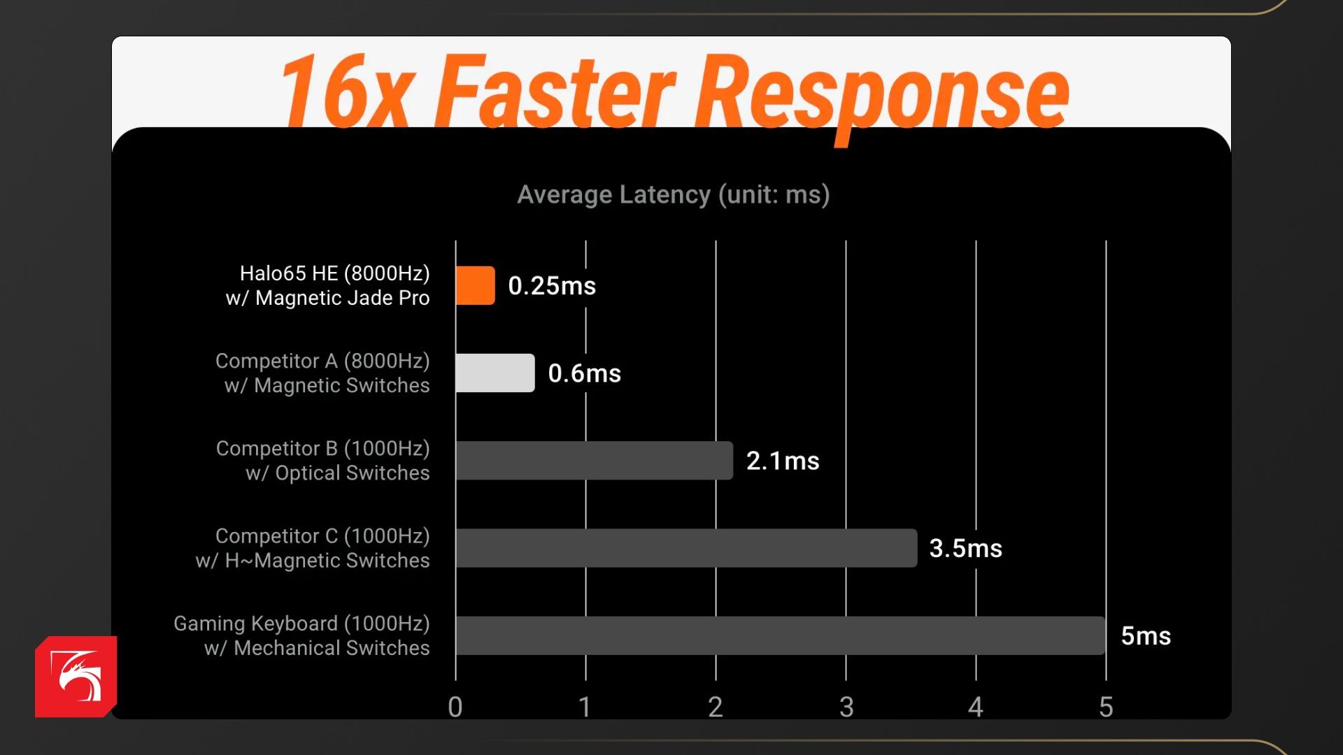Halo 65 HE есть, чем удивить по технической части. Фактически перед нами одна из самых скоростных клавиатур на рынке. Если обычно частота опроса 1000 герц, то здесь 8000 герц. Если обычно ход клавиши до срабатывания от 1 до 2 миллиметров, то здесь возможны 1/10 миллиметра. И если обычно общая задержка около 1 миллисекунды, то Halo 65 в 4 раза быстрее.